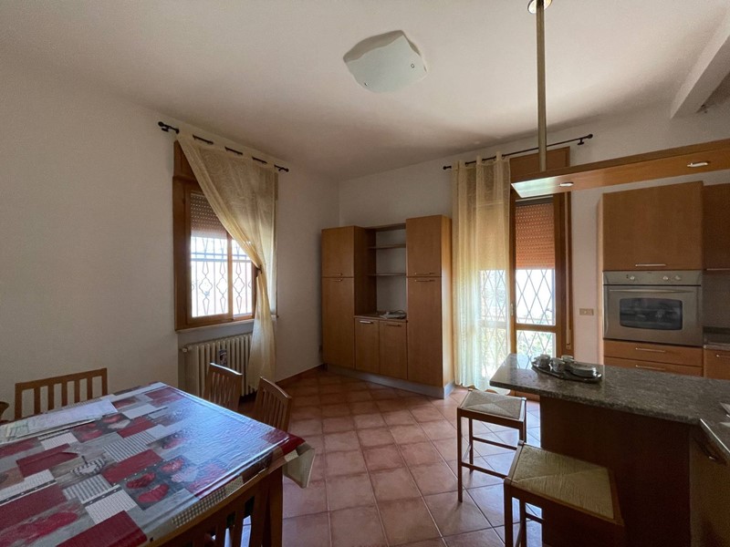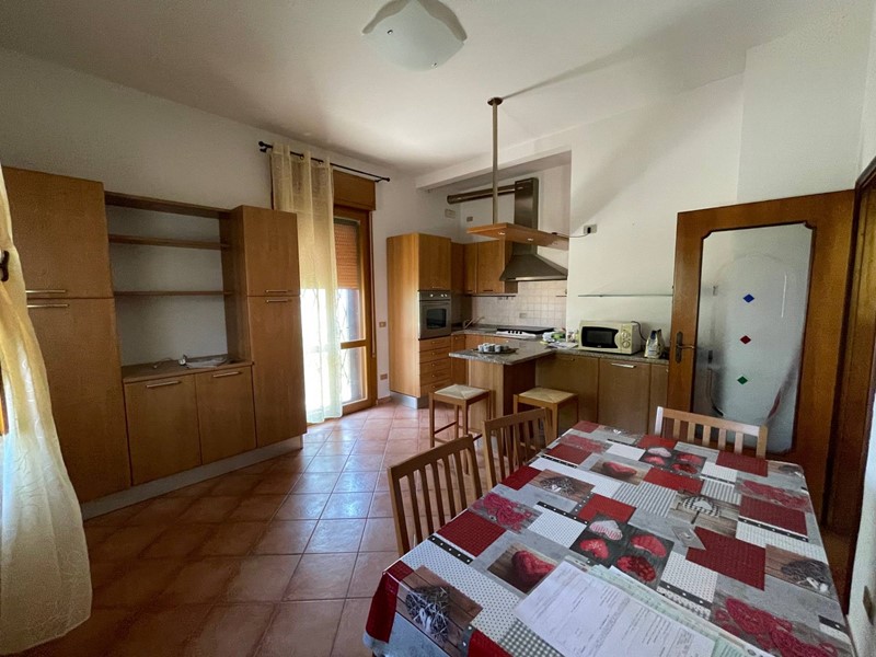 appartamento al piano primo: ingresso, ampio salone, grande cucina abitabile con affaccio sul balcone d'angolo. Disimpegno notte con tre camere da letto di cui due grandi matrimoniali e una comoda singola. Terrazza. Climatizzato. Pavimenti in monocottura tipo cotto. Gli infissi sono in legno con vetro singolo e zanzariere. Caldaia autonoma in sottotetto mansardato raggiungibile a mezzo di botola.