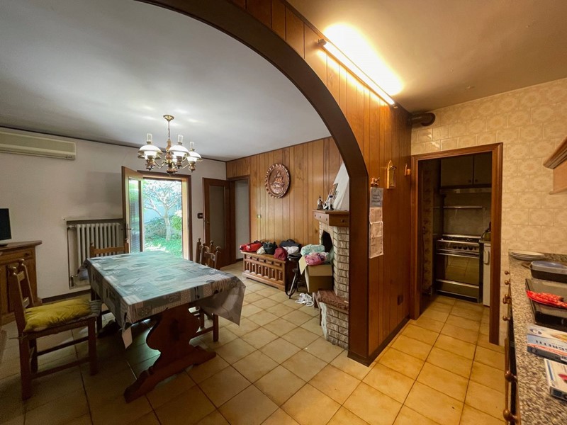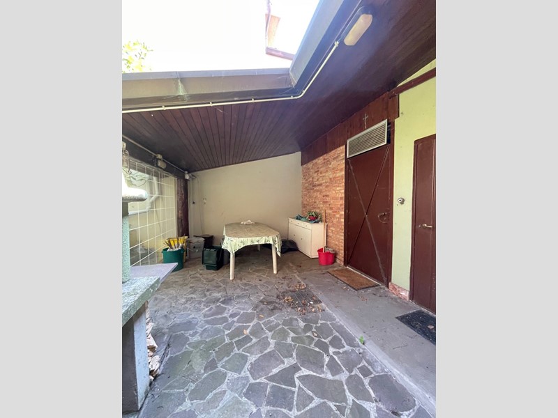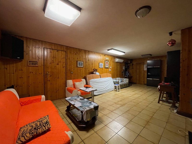 Il piano terra dellabitazione è accatastato a taverna e servizi ma cosi arredato e disposto: ingresso su cucina abitabile con camino, salotto o taverna, studio eventualmente collegabile al capannone, camera da letto disimpegno, bagno. Allesterno una tettoia con patio e camino, una zona ripostiglio e locale con caldaia di recente installazione.