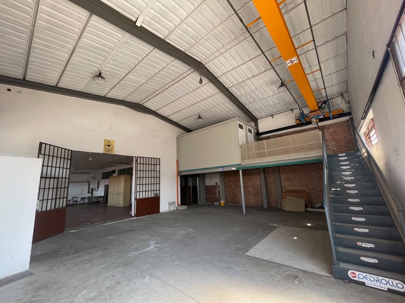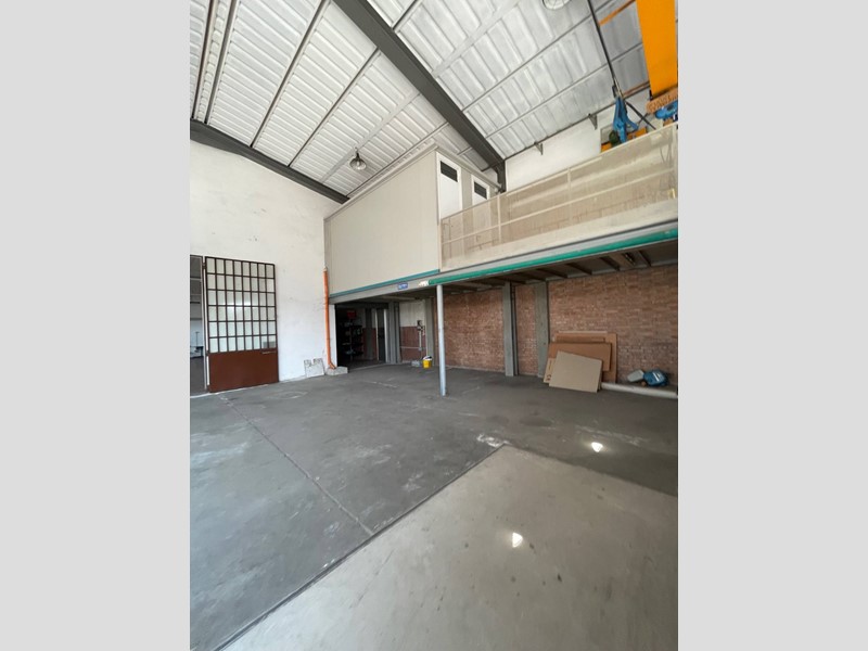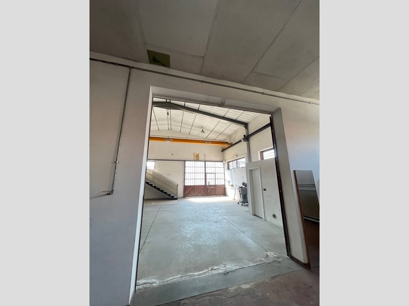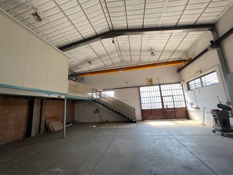 Capannone di circa 320 mq. composto da due grandi locali di cui uno a doppia altezza con carroponte della portata di 1 T. Soppalco interno con uffici, bagno. Altro locale deposito da utilizzare a seconda delle esigenze. Entrata principale per furgoni e camion, entrata pedonale. Riscaldato parzialmente con caldaia autonoma e termosifoni. Attorno al capannone un comodissimo piazzale che congiunge la via Donizetti con la via Rossini.