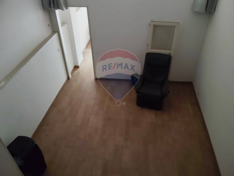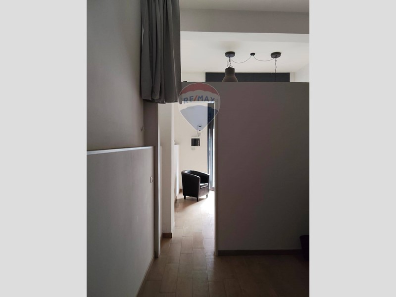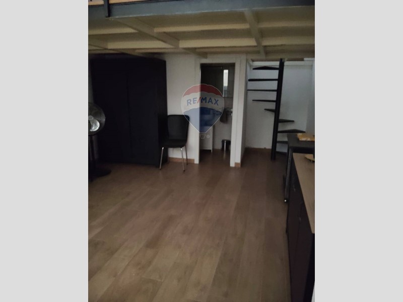 Spazi funzionali: zona ingresso/accoglienza (con parete divisoria in cartongesso removibile), ampio ambiente posteriore, bagno e soppalco con finestra.