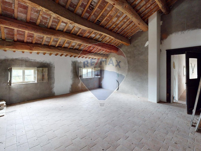 La casa colonica conserva il suo fascino rustico con elementi originali dell'epoca, come travi in legno a vista; necessita di una ristrutturazione per tornare al suo antico splendore, anche se sono già stati effettuati diversi lavori di consolidamento sismico e predisposizione impianti.