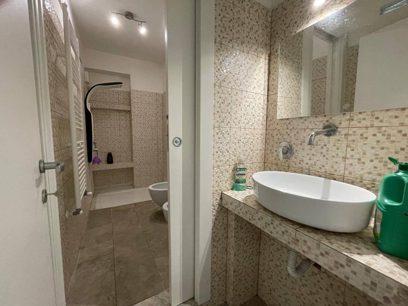 L'appartamento è internamente composto da: ingresso su soggiorno con cucina a vista, ampia camera da letto, due servizi, di cui uno con doccia e l'altro con vasca da bagno, locale di sgombero e dispensa.