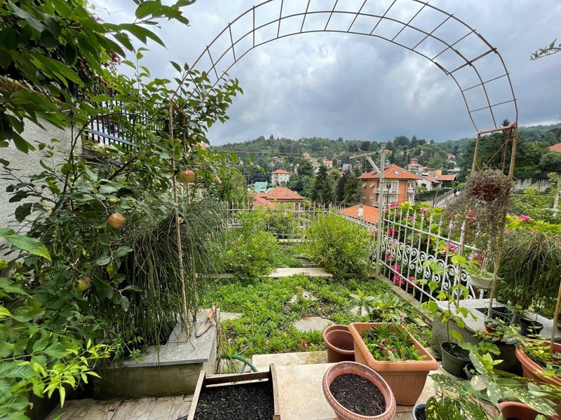 L'immobile è immerso nel verde e gode di una meravigliosa vista sulla collina di Cavoretto, inoltre offre spazi esterni unici nel loro genere, terrazzi con pergole in legno ombreggiate da una vite e un gelsomino; grazioso giardino e frutteto.