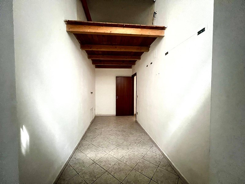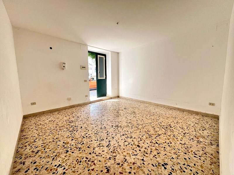 L'immobile ha una superficie di circa 70 mq e si accede direttamente da una persiana in legno che affaccia sulla strada. Una volta entrati, ci accoglie un soggiorno luminoso, perfetto come zona living o salottino. A seguire, troviamo un cucinino con accesso a un piccolo balconcino interno, utile come zona lavanderia o spazio esterno riservato.