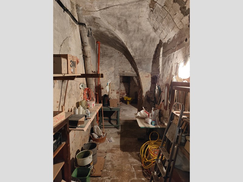 - al piano terra - locali vari per complessivi mq 140 circa, in buona parte architettonicamente pregiato da volte a crociera e destinato a cantine-ripostigli, ci sono alcuni gradini di dislivello con il giardino di cui appresso; ampio giardino di mq 190 circa con uno storico pozzo;