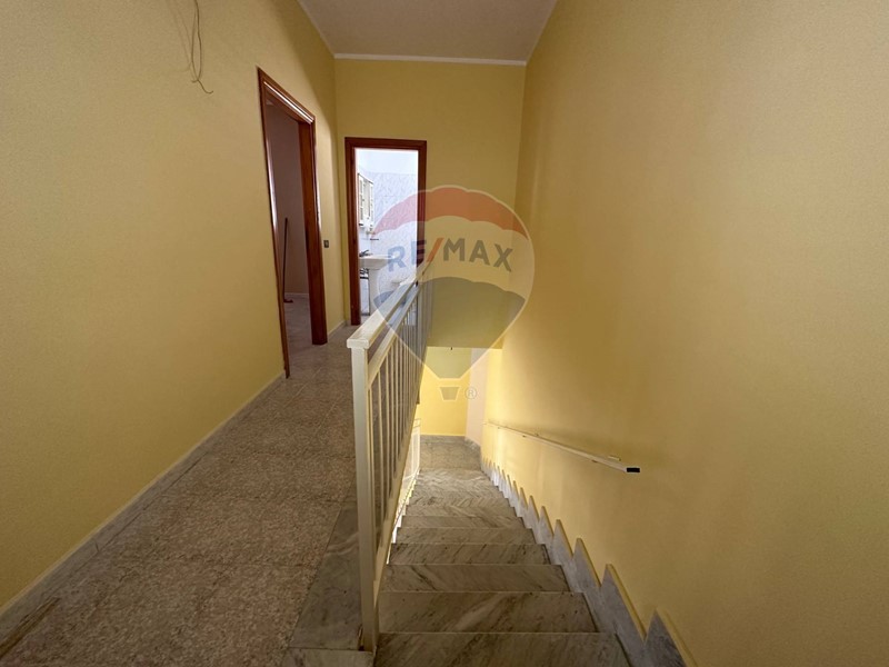 Al piano stradale vi è un ingresso/ sala, cucina e servizio; al primo piano vi è il bagno e  due camere da letto, entrambe con balcone. La scala interna ci conduce anche al piano inferiore, dove vi è la taverna con la predisposizione angolo cottura, un bagno ed un vano deposito.