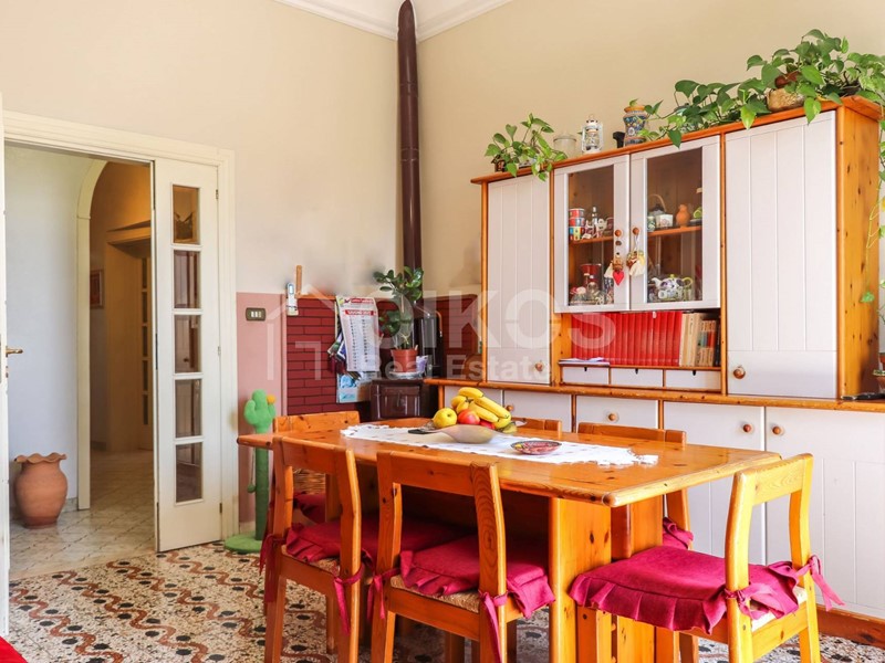 La zona giorno comprende inoltre una piccola cucina, ideale per chi ama la convivialità e desidera vivere appieno lo stile di vita mediterraneo, adiacente a una zona pranzo funzionale e ben illuminata che si affaccia sul terrazzo perfetta per accogliere momenti di condivisione in famiglia o con gli amici.