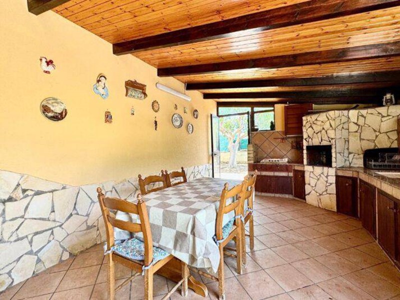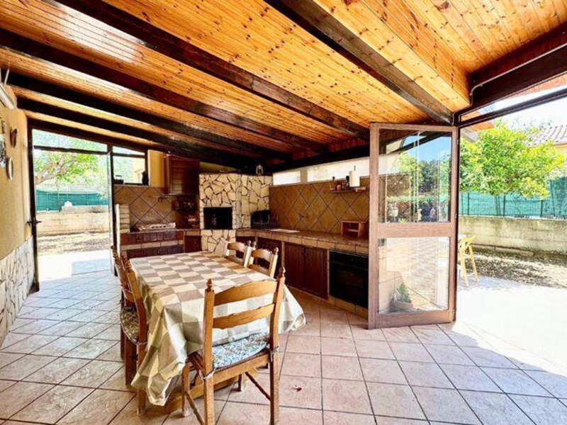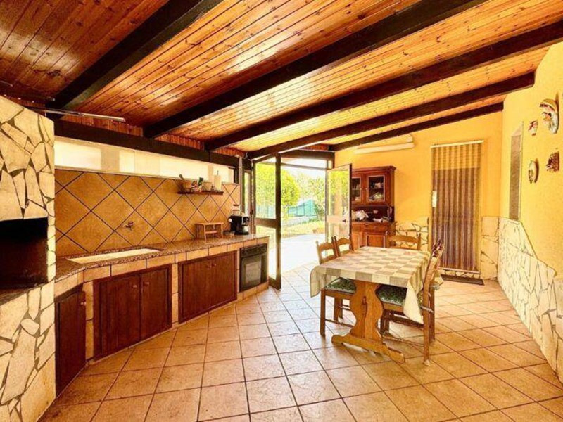 Ma non è finita qui! La villa vanta anche un ampio portico, perfetto per godersi l'aria aperta anche durante le giornate più calde. E per gli amanti del barbecue e della cucina all'aperto, c'è una bellissima veranda in legno con zona barbecue e forno.
