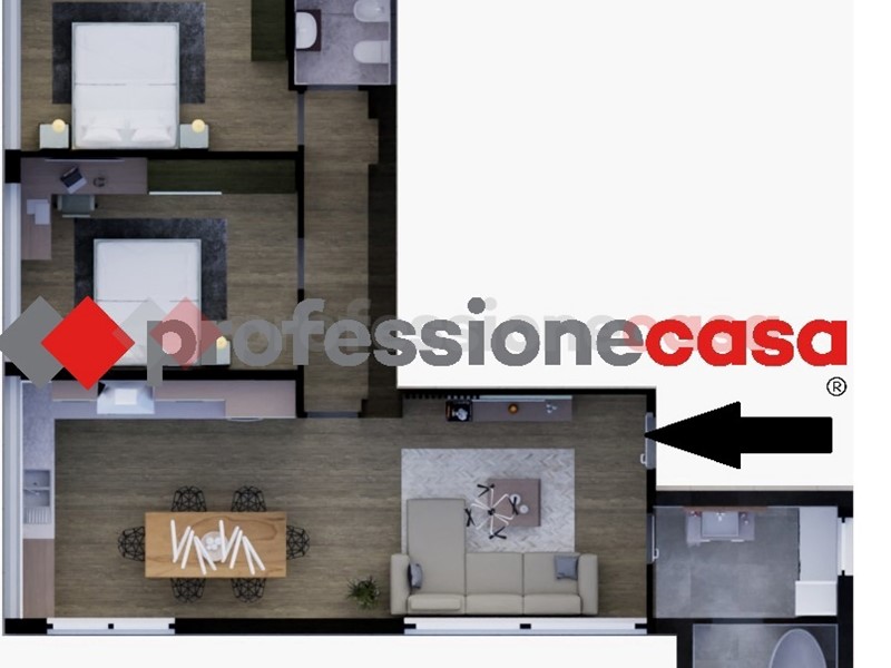 E' composto da ingresso in luminoso living caratterizzato da ampie superfici finestrate di 35mq con angolo cottura, disimpegno notte, camera matrimoniale, camera doppia, ampio bagno/lavanderia finestrato con doccia, ulteriore bagno con doccia walk in ed utile ripostiglio.