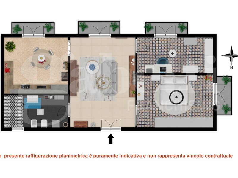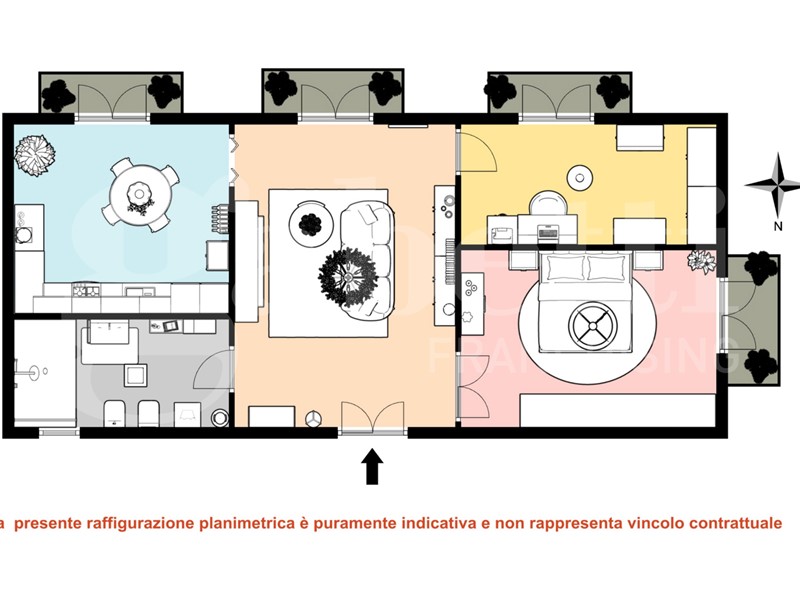 La soluzione è versatile, personalizzabile e offre la possibilità, grazie alla metratura e alla distribuzione interna, di poter ricavare un piccolo TRE LOCALI.