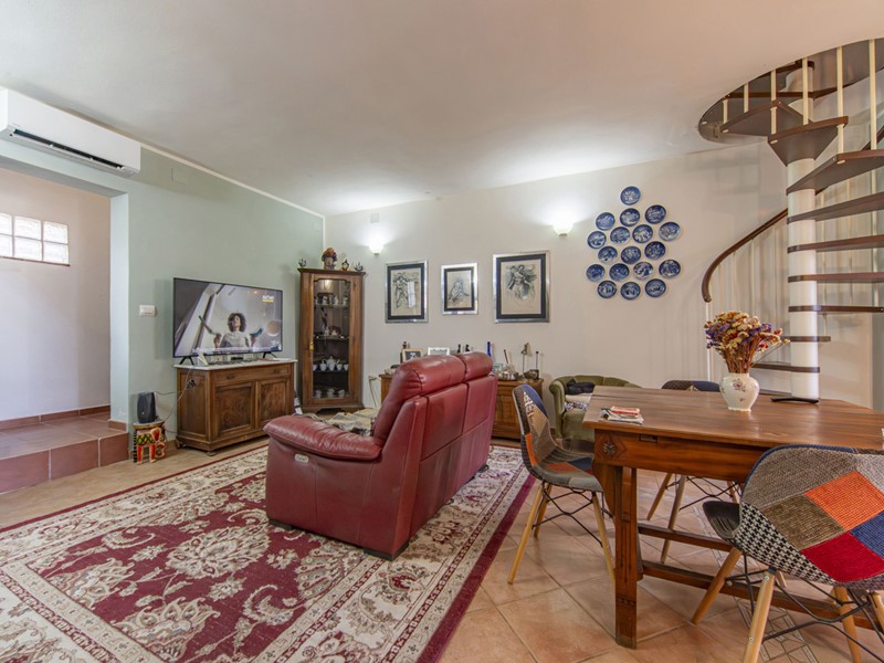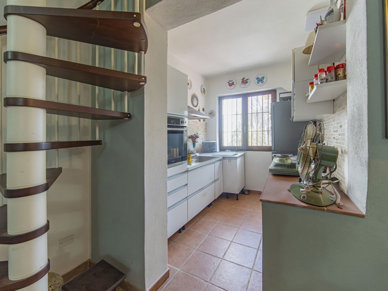L'immobile, articolato su due livelli, è composto al piano terra da ampia veranda coperta, soggiorno con angolo cottura, disimpegno, camera matrimoniale, camera singola, bagno con doccia e zona lavanderia; al piano primo troviamo una camera matrimoniale con bagno padronale e terrazza.