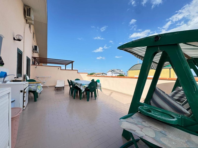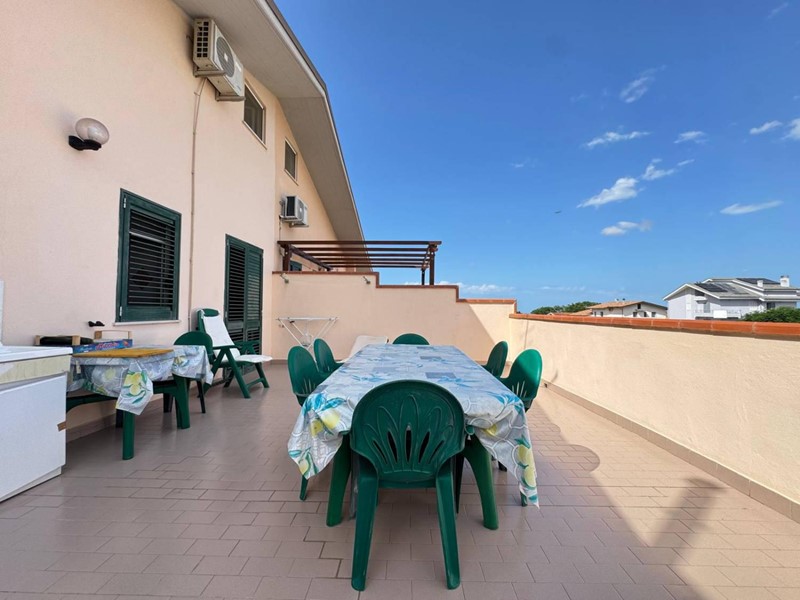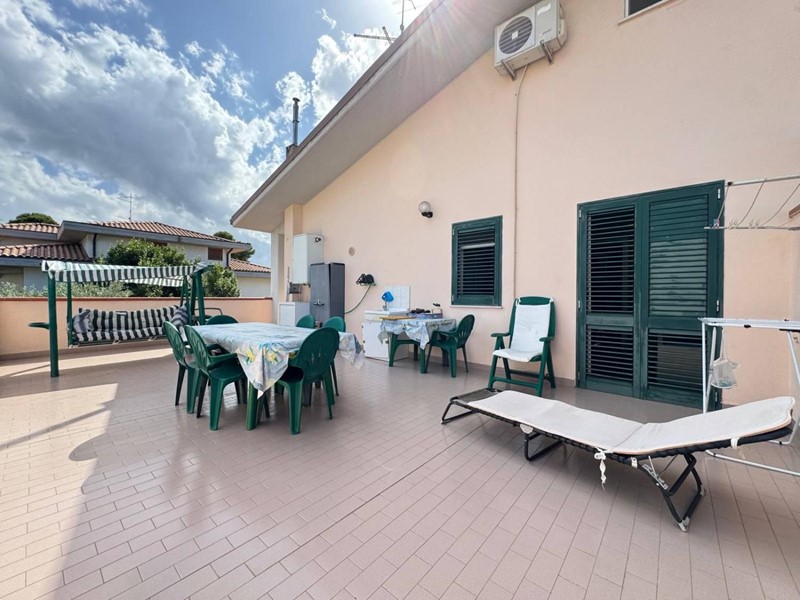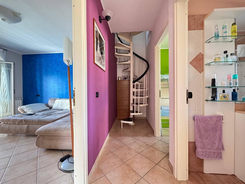 A Collecorvino, in zona tranquilla e residenziale, l'agenzia immobiliare Silvire propone in vendita una graziosa porzione di quadrifamiliare su due livelli con ingresso indipendente così composta: al piano terra troviamo un ampio giardino pavimentato di proprietà, al piano primo troviamo un ingresso su soggiorno con angolo cottura, un bagno con box doccia, una cameretta ed un'altra stanza adibita a zona relax. Inoltre dalla zona giorno si può accedere ad un meraviglioso terrazzo di 80 mq circa con vista panoramica. Attraverso una comoda scala a chiocciola abbiamo la zona notte composta da un secondo bagno, una camera matrimoniale ed una cameretta con un comodo ripostiglio capiente, entrambe le stanze da letto dispongono di climatizzatore. Le finiture dell'appartamento sono ottime e a concludere la proprietà vi è un garage di 20mq incluso nel prezzo. Ideale per uso residenziale data la vicinanza con il paese e tutti i principali servizi.
