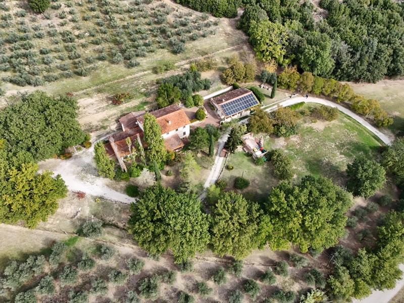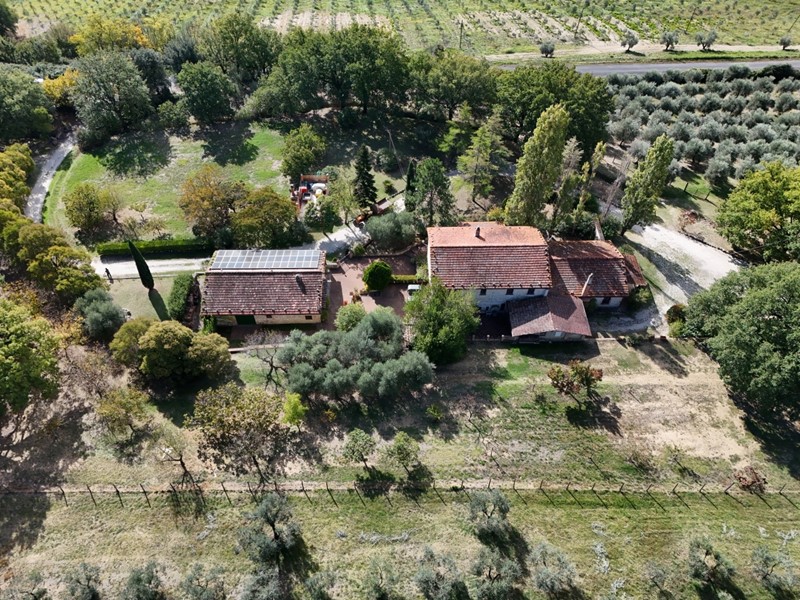 La proprietà è situata in posizione dominante con panorama unico su un terreno di 18 ettari circa trovasi a 5 km dal casello autostradale A/1 uscita attigliano , situata nella valle un tempo feudo dei Farnesi e poi degli Acquaroni dista 12 km da Amelia, 6km da Lugnano In teverina e 5,5 da attigliano , il terreno si svuluppa per 10 ettari di bosco e 6 ettari di seminativo arboreo ( circa 750 piante di olivo in produzione ). il compleso immobiliare si sviluppa su una corte di circa 5000 mq in parte pavimentata composto da un casal eid 400 mq ed un annesso agricolo di 150 mq , Il casale si sviluppa su due livelli al piano terra troviamo un salone di 100 mq con un camino in marmo, un ingresso ch eporta al piano superiore , sempre al piano terra abbiamo una cucin abitabile con annesso tinello , un salotto , ,una sala studio e un bagno , al piano mprimo troviamo 5 camere matrimoniali e un agrande bagno, nella corte esterna troviamo un punto picnic dotato di acqua ed energia , l'intera proprietà è servita da ebergia elettrica trifase di 6 kw ,utenza acqua comunale , serbatoio per il gpl e un pozzo artesiano capace di erogare 20 litri di acqua al minuto , la proprietà è dotata di impianto di riscaldamento , video serveglianza , wi-fi e antenna satellitare . l'annesso agricolo di 150 mq è sdibito al servizio del casale formato da piu locali destinati ad una piccola Cappella, sala cinema , forno a legna , rimessa attrezzi agricoli , ricovero delle attrezzature da giardino , stoccaggio produzione olio . Sul tetto dell'annesso troviamo un impianto fotovoltaioco della potenza di 9,6 kw.