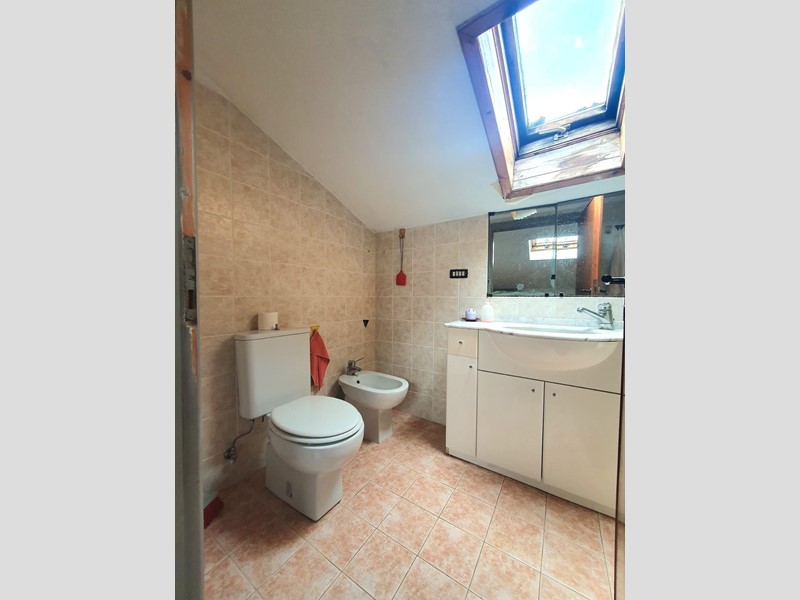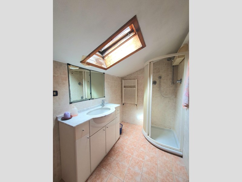 La comoda scala rivestita in legno ci accompagna al piano sottotetto mansardato composto da due vani abitabili (dove si può ricavare almeno una terza grande camera più uno studio) dotati di quattro grandi lucernari che li rendono molto luminosi, un bagnetto con doccia e un altro lucernario, un vano ripostiglio più grande e altri tre più piccoli nelle parti più basse.