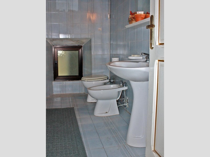 Piano primo salone doppio con camino, cucina, camera matrimoniale con bagno.