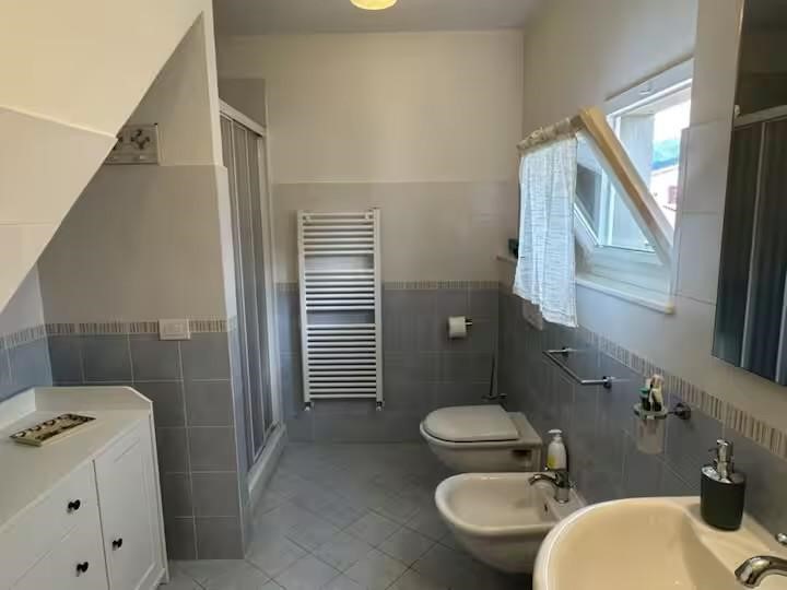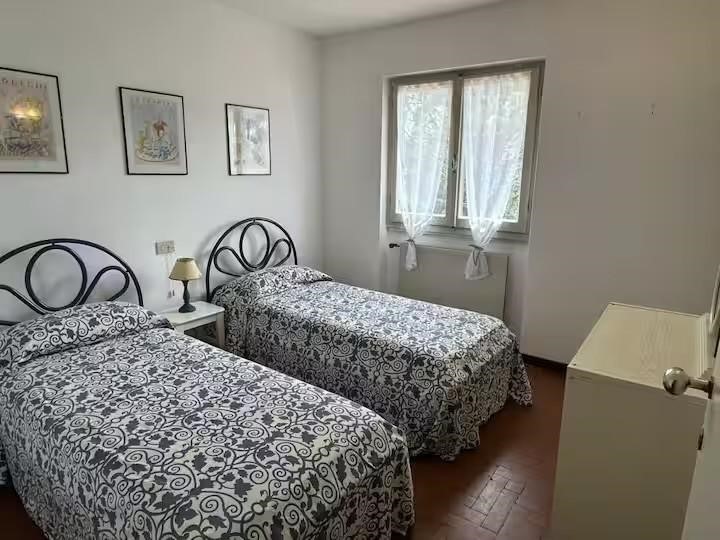 Porzione di bifamiliare a Forte dei Marmi ( Vittoria Apuana) a solo 700m dal mare. Si trova in piccola stradina a fondo chiuso, per cui un posto molto silenzioso .A pochi passi vi troverete nel piccolo centro del paese e poco distanze anche il Centri di Forte dei Marmi. COMPOSTA DA: Piano terra con soggiorno , zona pranzo, cucina, sala adibita a camera da letto con porte finestre che accedono al giardino, bagno con box doccia. Al primo piano abbiamo una camera matrimoniale con aggiunto un letto a castello, camera doppia, bagno con box doccia. Lavatrice, lavastoviglie, microonde, aria condizionata, Wifi. Porticato arredato per i pranzi all'aperto, doccia esterna, barbecue, 400mq di giardino, biciclette a disposizione [CIN: IT046013C2QZRJ0CPG]