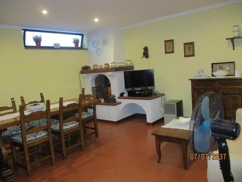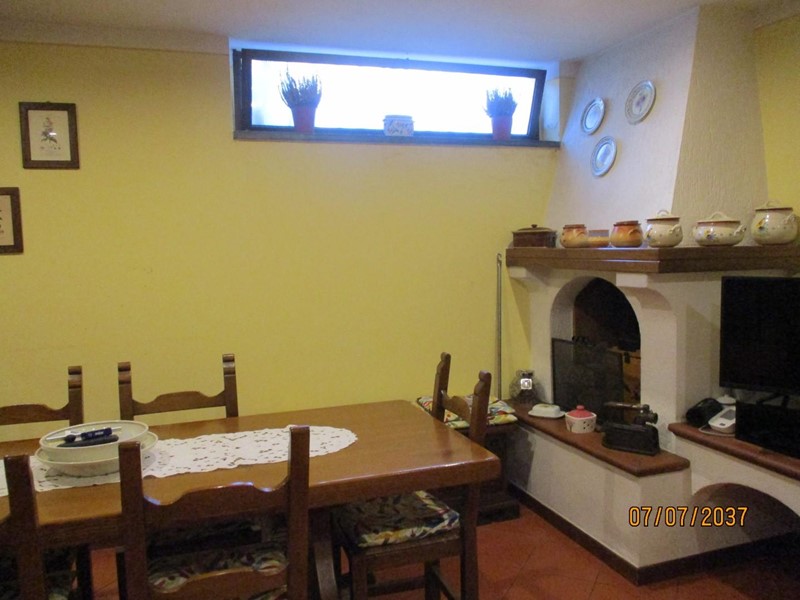 Piano taverna:: salone con angolo cottura e caminetto, altra stanza ad uso ripostiglio e dispensa.