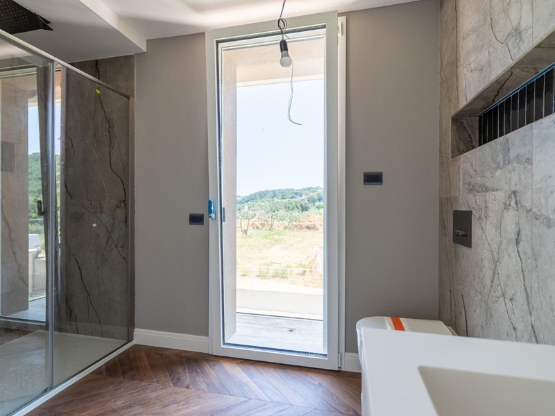 Costruzione 2025, in fase di finitura. Infissi in PVC, rivestiti in alluminio, con doppi vetri e zanzariere.