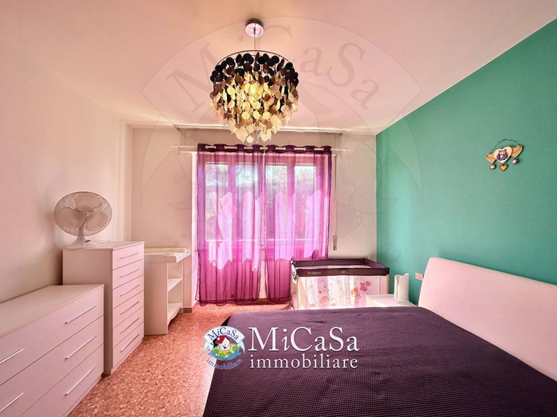 La zona notte, ben disimpegnata, ospita un pratico ripostiglio, una camera matrimoniale di oltre 15 mq, una seconda camera con balcone e un bagno finestrato con box doccia.
