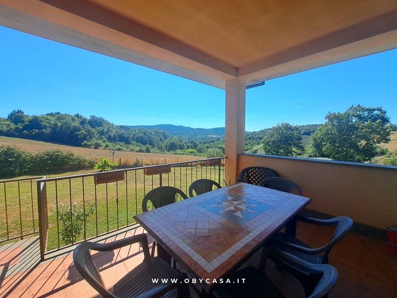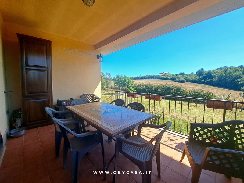 LAgenzia Immobiliare ObyCasa di Oriolo Romano propone in vendita una porzione di bifamiliare di mq 270 ca calpestabili con portici, terrazzino e terreno di 10.000 mq circa.
