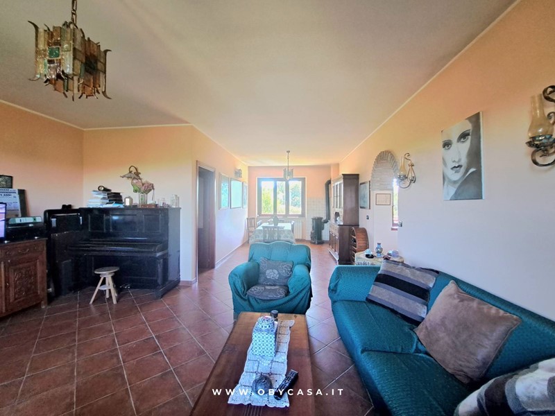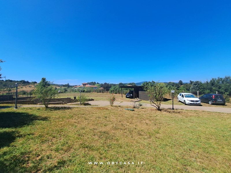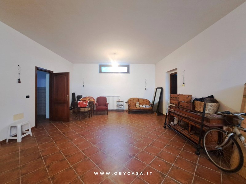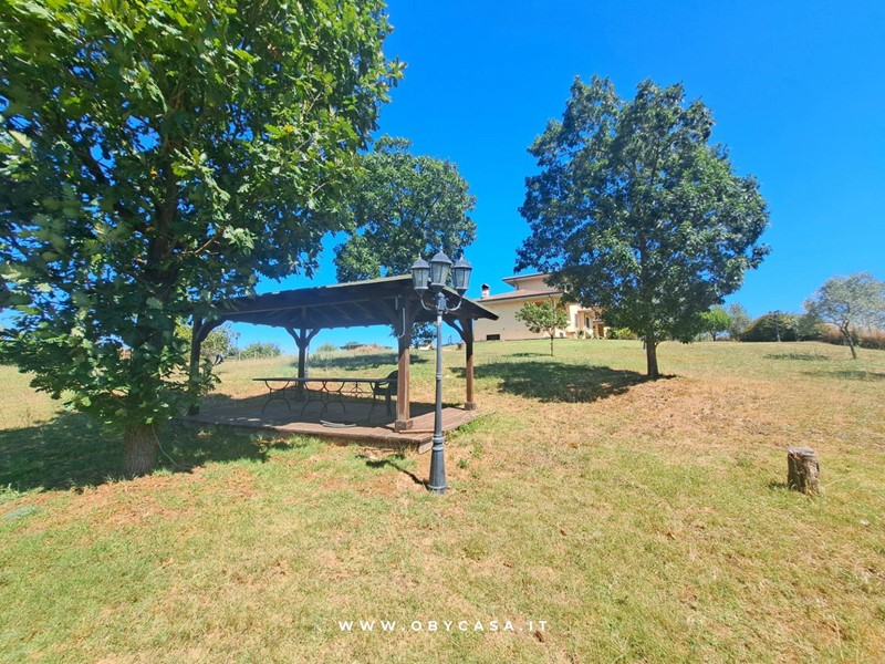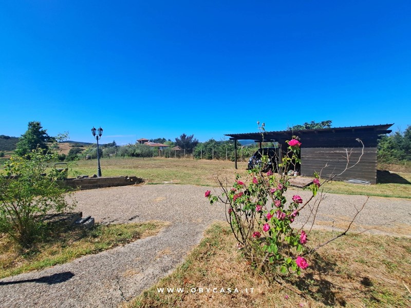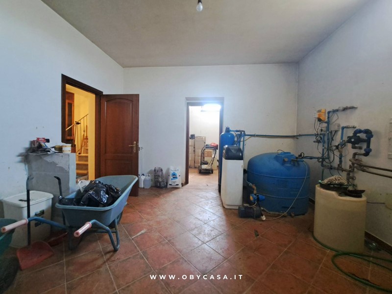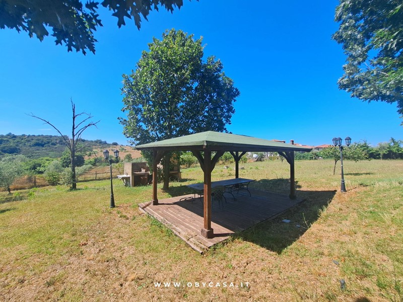 A completare la proprietà troviamo unintercapedine ispezionabile lungo tutto il perimetro del fabbricato, terrazzino di 12 mq al primo piano, un ampio portico dingresso di 17 mq, un portico di 13 mq con accesso dalla cucina, ideale per pranzi e cene estive ed un ampio terreno di circa 10.000 mq completamente recintato, pianeggiante e dotato di tutti i comfort, quali prese dacqua, illuminazione, gazebo con zona barbecue e forno a legna, tettoia esterna in legno per le auto arricchito da piante ornamentali e da frutto, tra cui quattro filari di ulivo e diciassette noccioli.