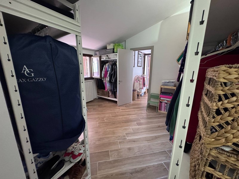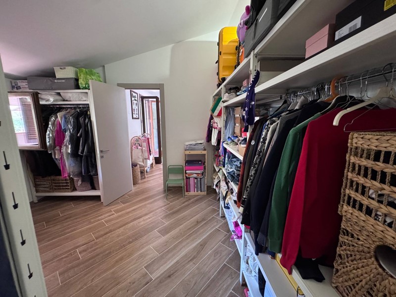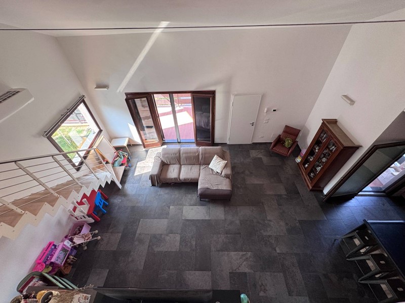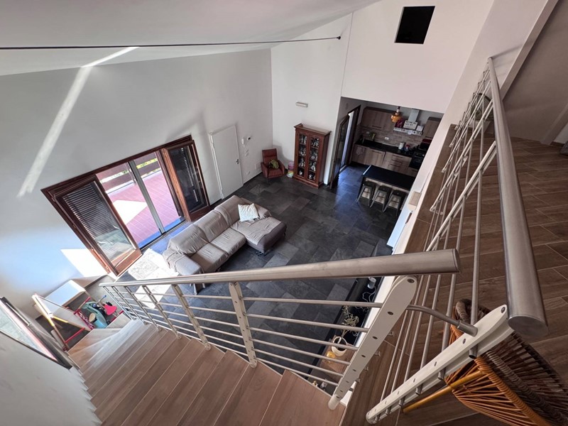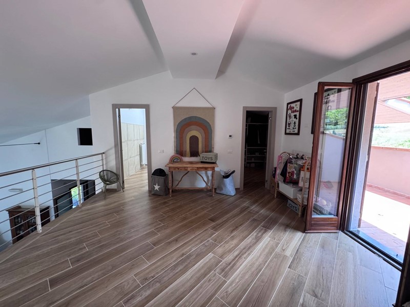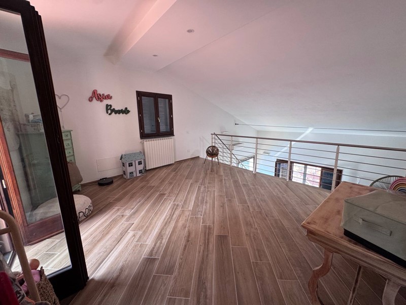 al piano primo, in parte soppalcato e raggiungibile tramite scala interna realizzata in legno e ferro, da ampio disimpegno, secondo bagno con doccia e lucernario, locale guardaroba che può essere utilizzato tranquillamente come studio o terza camera, soffitta con affaccio sulla zona giorno, oltre a terrazza a tasca con attacco per pilozzo e lavatrice;