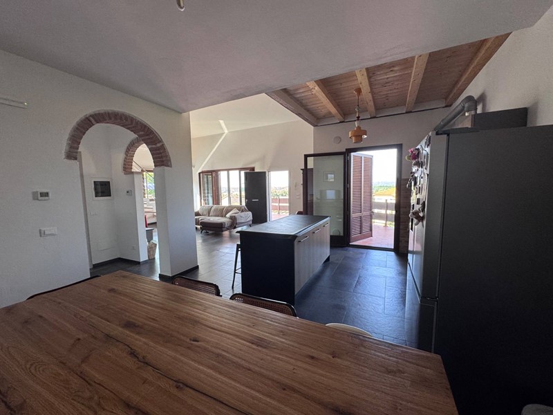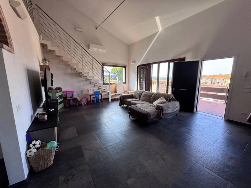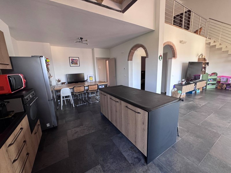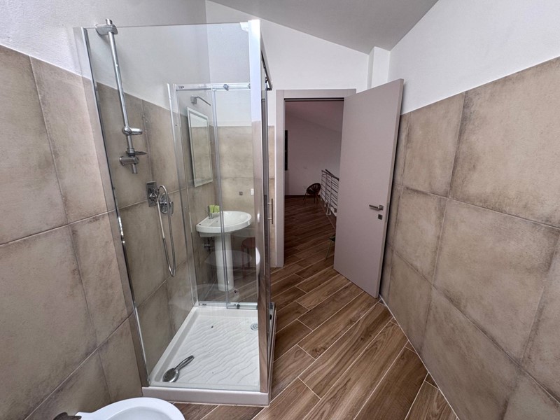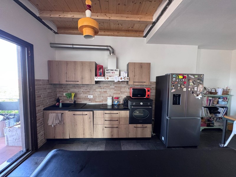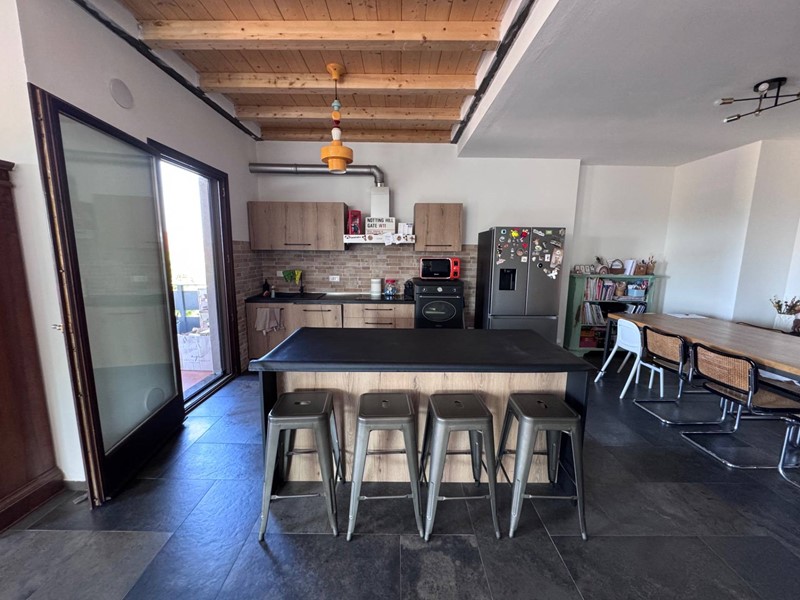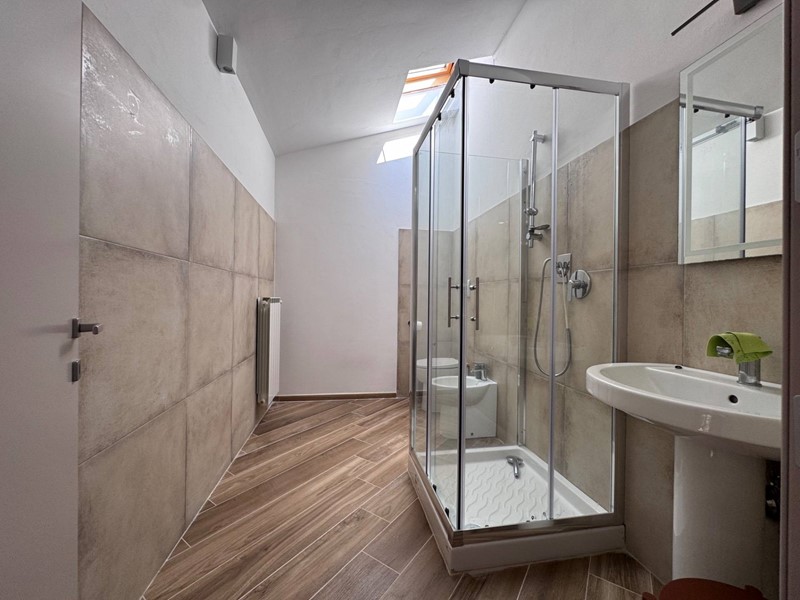 al piano primo, in parte soppalcato e raggiungibile tramite scala interna realizzata in legno e ferro, da ampio disimpegno, secondo bagno con doccia e lucernario, locale guardaroba che può essere utilizzato tranquillamente come studio o terza camera, soffitta con affaccio sulla zona giorno, oltre a terrazza a tasca con attacco per pilozzo e lavatrice;