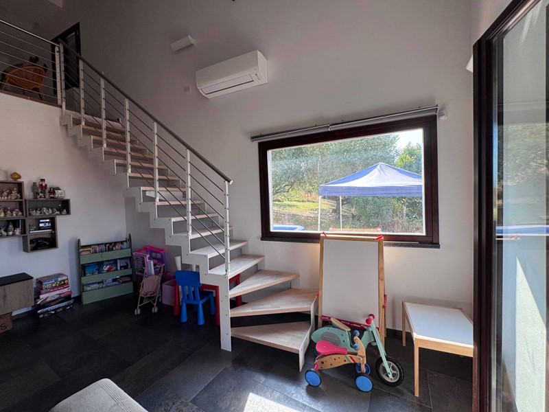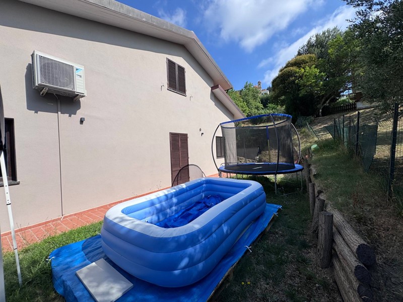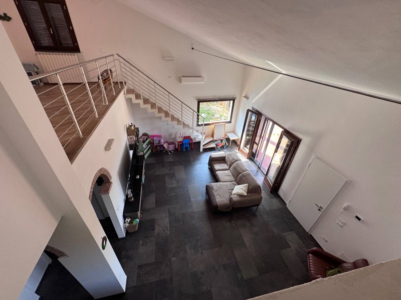 Completa la soluzione un resede terrazzato a verde che va dal piano interrato al piano terreno e che circonda i tre lati liberi dell'unità abitativa. Portoncino blindato, doppi vetri e zanzariere, addolcitore, impianti di allarme e condizionamento. Certificazioni a norma di legge, riscaldamento a pavimento, cappotto termico e caldaia a condensazione. A due passi da mezzi e servizi. Vista panoramica.
