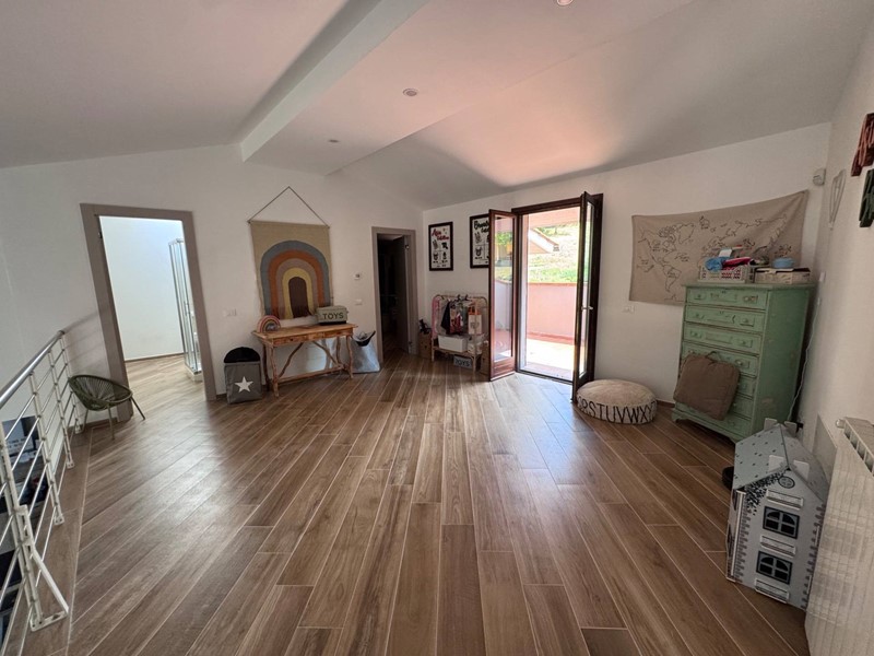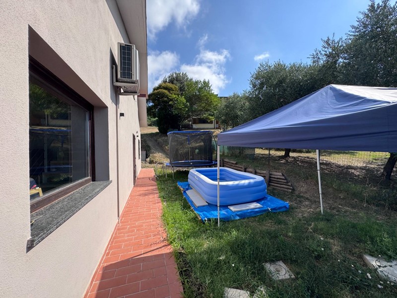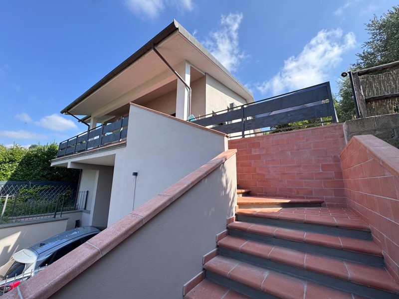 Forcoli. Villetta angolare di ampia metratura ultimata nel 2022 e più precisamente porzione di bifamiliare libera su tre lati sviluppata su due piani fuori terra, oltre al piano interrato con circa 300 mq di terreno di proprietà posti sul retro del fabbricato. Dal piano strada, si accede alla proprietà da cancello automatico scorrevole e rampa carrabile dove poter parcheggiare due auto e alla scala esterna che porta poi al piano terreno.