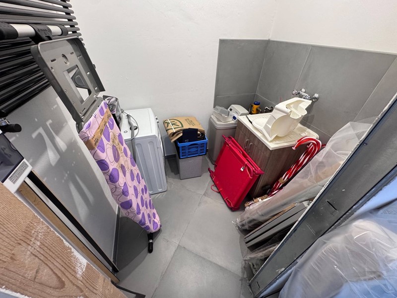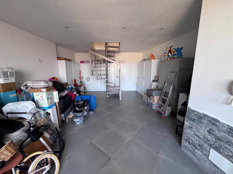 al piano interrato da garage di circa 50 mq già adattato a taverna con predisposizioni per un'eventuale cucina, lavanderia, terzo bagno di servizio con attacco per lavatrice ed impianto di aspirazione.