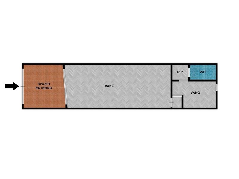 L'immobile si sviluppa su una superficie di mq 71 attualmente suddivisa in ampio vano dingresso, retrobottega, piccolo ripostiglio e servizio igienico.