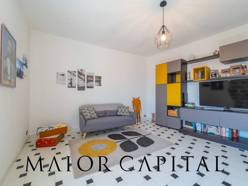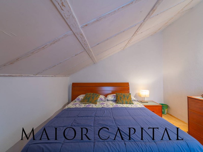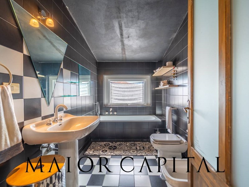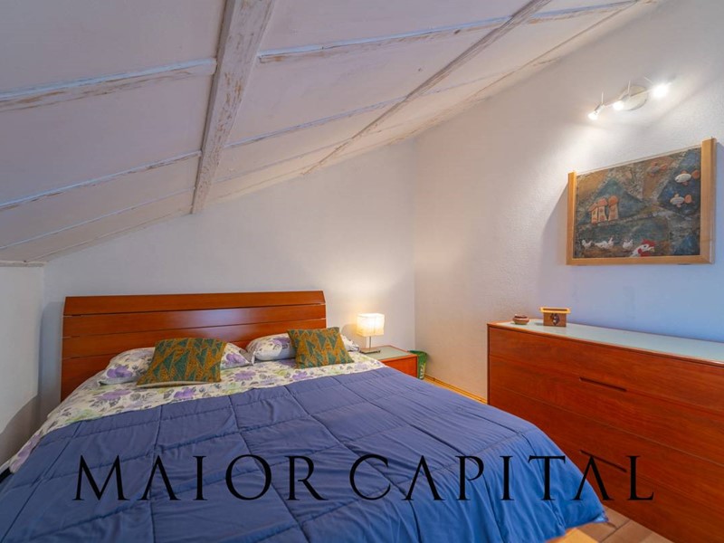 La zona notte offre ambienti versatili e ben distribuiti: una luminosa camera matrimoniale con bagno en suite. Una seconda camera matrimoniale mansardata, ben proporzionata e facilmente adattabile alle diverse esigenze, una cameretta, che si presta perfettamente a essere utilizzata come studio o stanza giochi per bambini. Completa la proprietà un secondo bagno, rifinito con piastrelle bianche e nere, dal design contemporaneo.