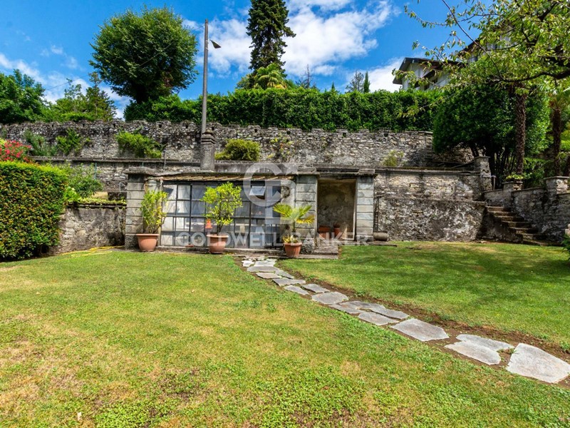 Allesterno, un incantevole parco pianeggiante di 1.500 m² impreziosito da una serra storica, piante ornamentali e ampi spazi ideali per momenti di relax o convivialità allaperto, con vista sul Lago di Como.