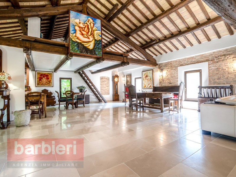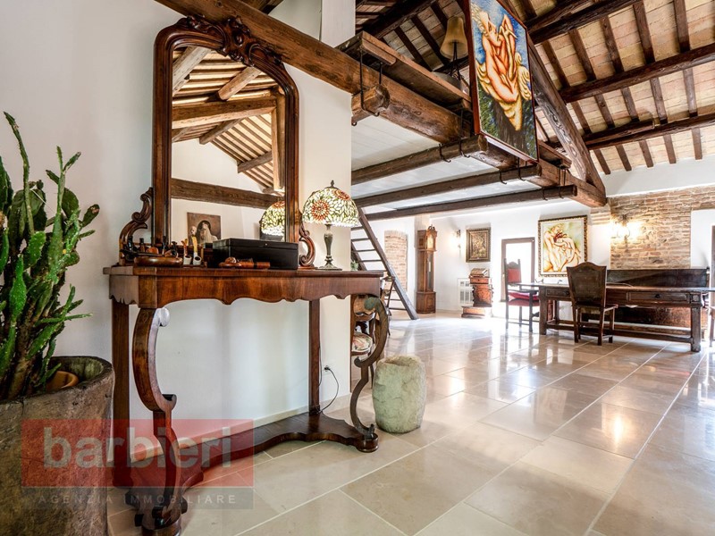 Vendiamo esclusiva villa a Ravenna: fascino rustico e ampio potenziale. Proponiamo in vendita una magnifica villa a Ravenna, immersa in un ampio e curato giardino, ideale per chi cerca una residenza di prestigio o un'opportunità di investimento con la possibilità di creare più unità abitative indipendenti. La villa si distingue per la sua architettura affascinante, una dimora dal sapore tradizionale. Al piano terra, molteplici aperture ad arco, dotate di imponenti portoni in legno massiccio, suggeriscono accessi indipendenti e ampi spazi interni. La proprietà è circondata da un vasto giardino ben curato, con prato verde e alberi secolari che offrono ombra e privacy, creando un'oasi di tranquillità. Un caratteristico vialetto ghiaioso conduce all'ingresso principale della villa. Gli interni, luminosi e accoglienti, combinano elementi rustici con un design moderno. I pavimenti in piastrelle chiare esaltano la luminosità degli ambienti, mentre i suggestivi soffitti con travi in legno a vista, presenti in molteplici stanze, conferiscono un'atmosfera calda e autentica. Il cuore della casa è rappresentato da un ampio salone impreziosito da un imponente camino in mattoni con una robusta mensola in legno, ideale per momenti di convivialità. Un'altra sala, perfetta come zona pranzo con affaccio giardino. Le camere sono spaziose e luminose. Una camera matrimoniale offre un ambiente confortevole con letto dotato di testiera imbottita grigia e arredi moderni, inclusa una suggestiva nicchia con mattoni a vista. Un'altra camera, ideale per ospiti o bambini, presenta un tradizionale letto singolo in legno scuro e vivaci opere d'arte alle pareti. Grazie alla sua generosa metratura, ai molteplici accessi indipendenti al piano terra e alla disposizione interna degli spazi, la villa si presta in modo eccellente alla suddivisione in più unità abitative o appartamenti. Questa caratteristica la rende particolarmente interessante per investitori che desiderano realizzare un bed & breakfast o più residenze per famiglie. Non perdere l'occasione di scoprire questa proprietà unica.