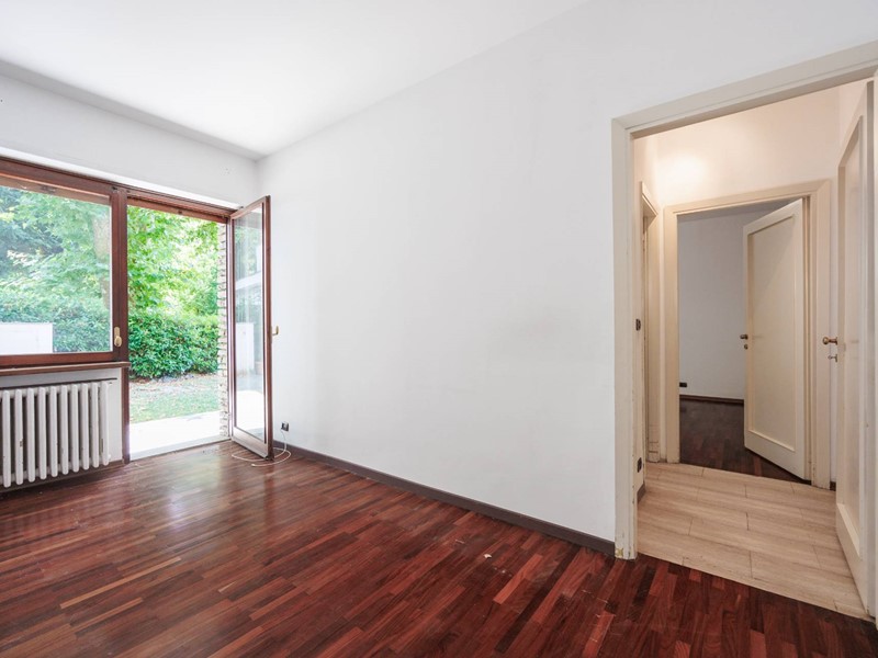 A pochi metri da Corso Giovanni Lanza, in contesto esclusivo e riservato di sole due palazzine adiacenti, appartamento al piano terra con giardino privato di circa 80 mq. e splendida vista sulla città. La proprietà, internamente da ristrutturare, è composta da ingresso, soggiorno triplo, cucina abitabile, due camere di cui una con bagno privato, secondo bagno e una spaziosa cabina armadi; ulteriore ampia camera attualmente adibita a sala cinema, illuminata da finestre a bocca di lupo. Volendo è facilmente ricavabile una terza camera. Il salone, perimetrato da ampie vetrate, e la cucina sono dotati di accesso diretto al giardino recintato e ottimamente esposto a Sud. Possibilità di accedere all'immobile anche da un cancelletto esterno. Completano la proprietà una cantina di pertinenza, un posto auto coperto in autorimessa condominiale e la possibilità di parcheggiare una macchina esternamente. Riscaldamento centralizzato, predisposizione per aria condizionate e antifurto. Il condominio è dotato di servizio di portineria tutto il giorno ed è ubicato al fondo di una strada privata, così da risultare estremamente silenzioso e protetto.