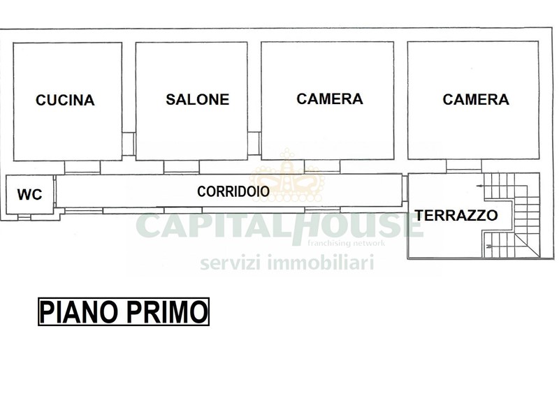 -primo piano: (appartamento di 105mq calpestabili) composto da: cucina, salone, 2 camere, un bagno e terrazzo di 10mq;