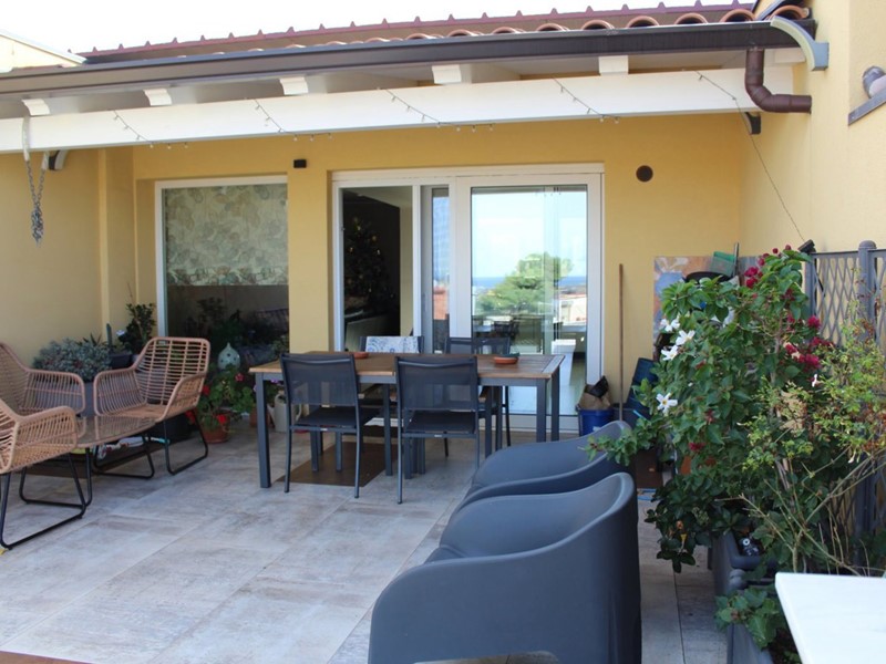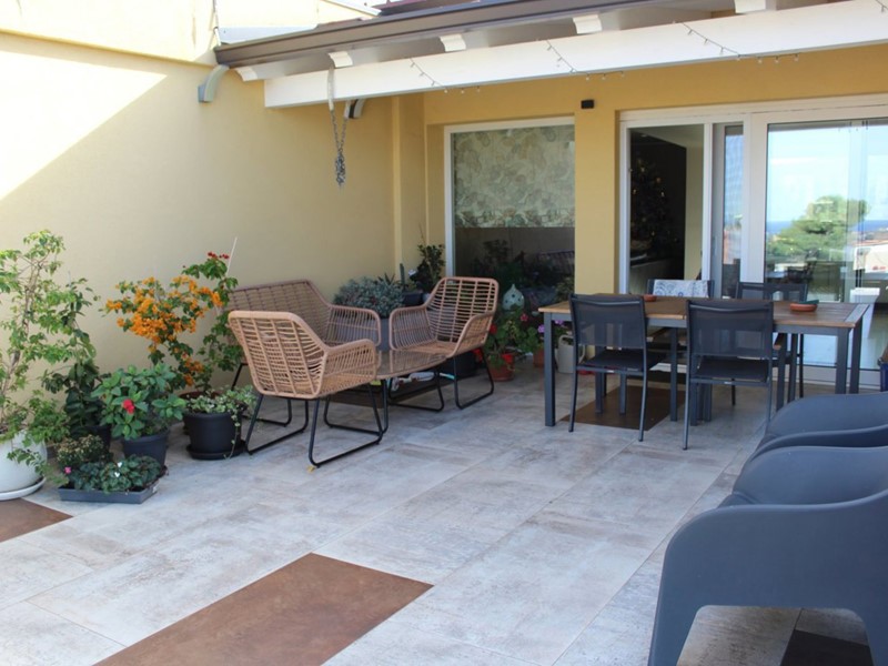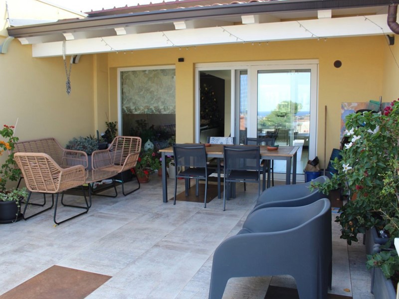 Piano 3° composto da ampio disimpegno con armadio a muro, tre camere di cui una matrimoniale con annesso spogliatoio, wc doccia e vano lavanderia; tramite scala interna si accede al piano 4° composto da grande ambiente living con cucina a vista, wc doccia, ripostiglio e complanare terrazzo con vista mare.