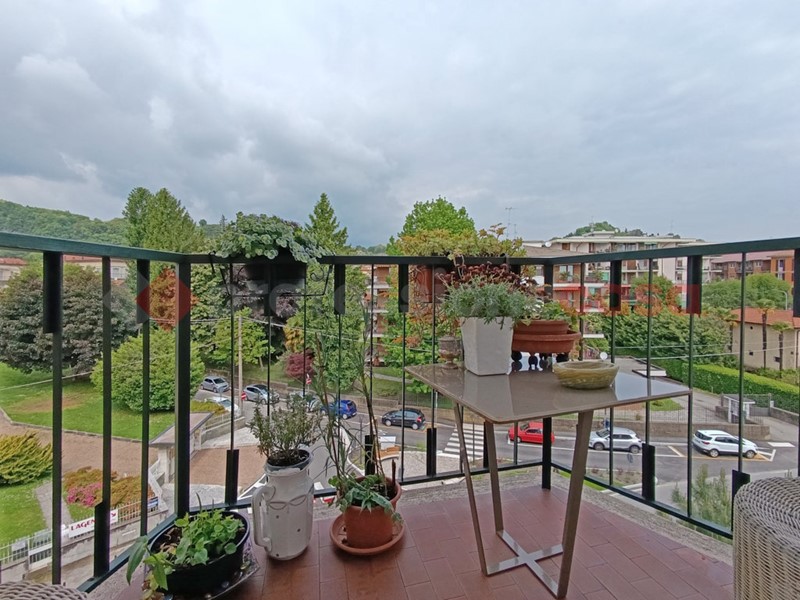 In zona centrale, a pochi passi dal lago e dalla stazione, proponiamo luminoso appartamento posto al quarto piano con ascensore. L'appartamento è composto da ingresso con porta blindata, soggiorno con porta finestra sul balcone, cucina composta da zona pranzo e zona tinello con balcone, dal disimpegno si accede alla zona notte nella quale troviamo due spaziose camere da letto entrambe con il proprio balcone e bagno con doccia. L'appartamento si presenta in ottime condizioni e subito abitabile, ha il pavimento in parquet in tutti i locali tranne il bagno e serramenti in PVC doppio vetro. Attualmente abitato e libero a partire da gennaio 2026. Completo di cantina.
