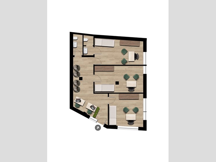 Tre stanze ad uso ufficio/studio, ciascuna di circa 18 mq