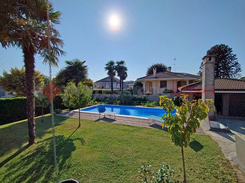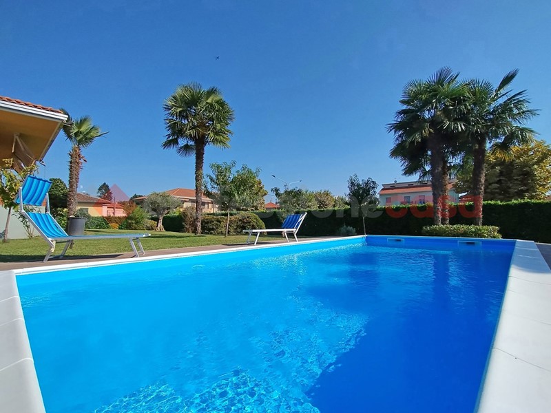VENDESI in centro paese, bella villa singola di mq. 485 su lotto di terreno di mq. 1390 con piscina interrata di acqua salata. La parte residenziale, tutta al piano rialzato, è composta da ampio ingresso, soggiorno con camino ventilato, sala pranzo, cucina abitabile; il disimpegno con armadi a muro, porta alle tre camere da letto e ai due bagni. Tutti i locali si affacciano su ampi balconi e sono tutti climatizzati. La parte seminterrata, collegata sia con scala interna, che con accesso dall' esterno, è composta da taverna con cantinetta, locale caldaia, lavanderia/bagno, locale deposito, garage da mt. 10x3,6 h.4,5, ideale anche ritiro camper, più garage singolo. Il giardino che circonda la casa è piantumato e molto ben tenuto, con piscina interrata di recente costruzione di mt. 9x4 e impianto di filtrazione con acqua salata, oltre ad autorimessa esterna multiuso che completa la proprietà. Caldaia cambiata di recente, aggiornamento APE in corso.