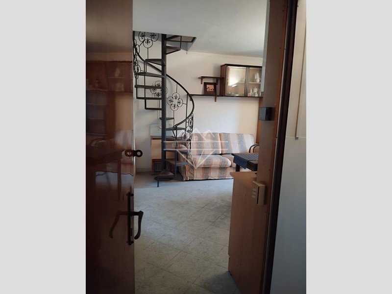Al piano primo ingresso, soggiorno con angolo cottura, antibagno e bagno, al piano superiore, camera matrimoniale e cameretta con balcone. Piccolo ripostiglio esterno in comune. Nessuna spesa condominiale.