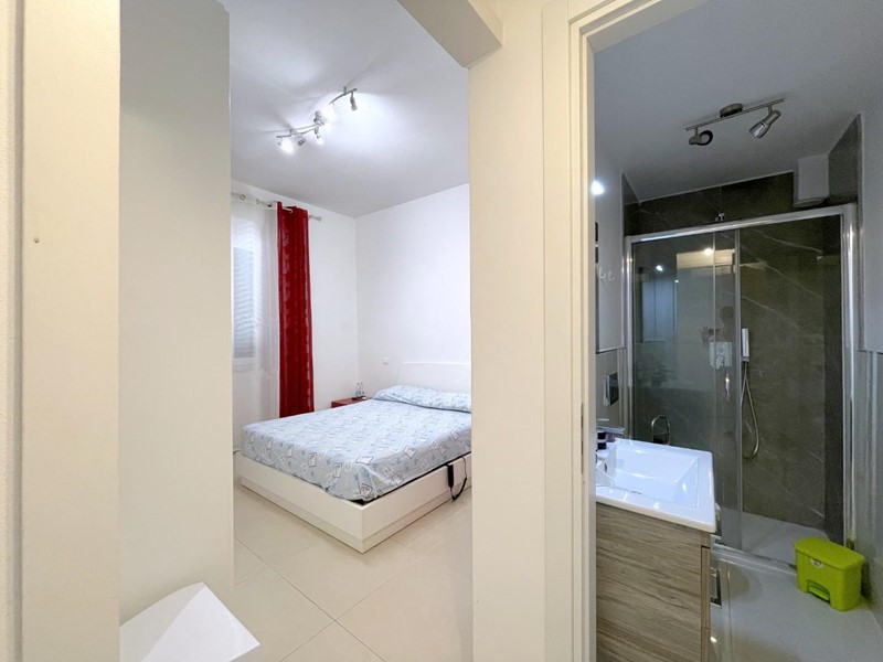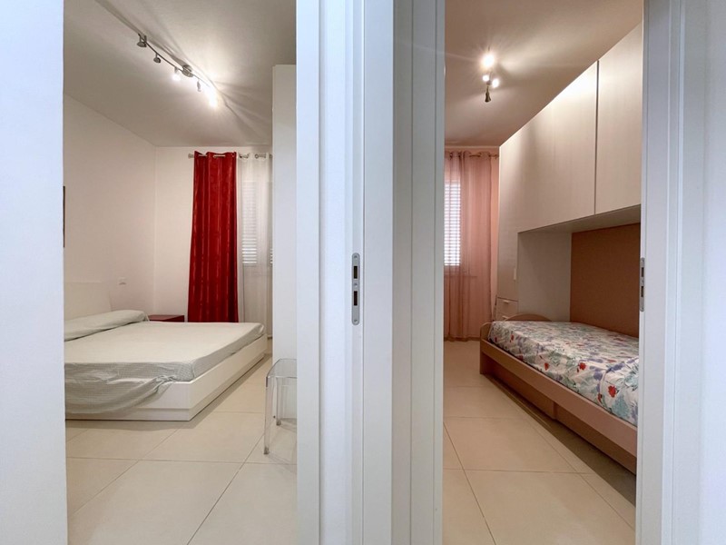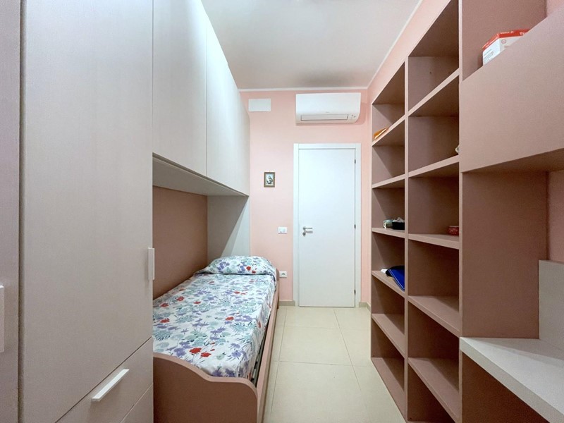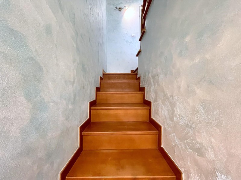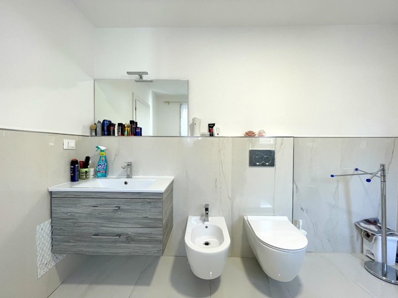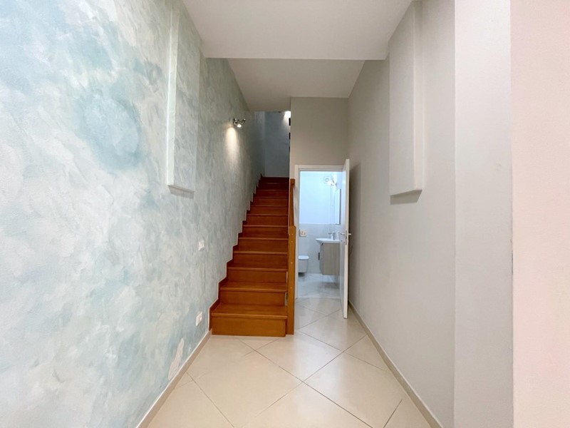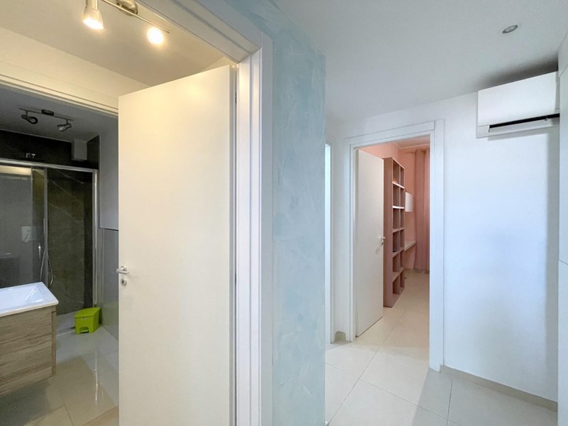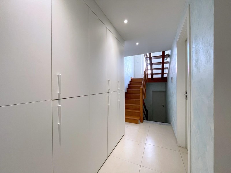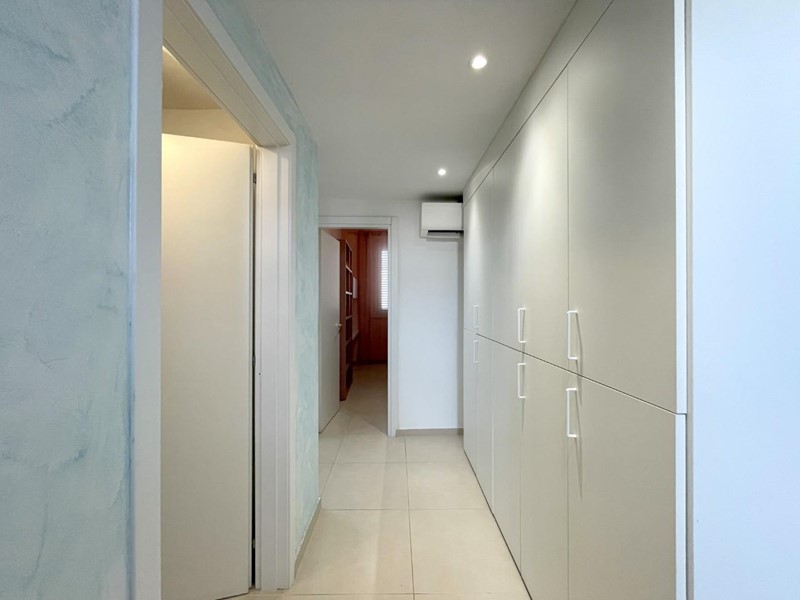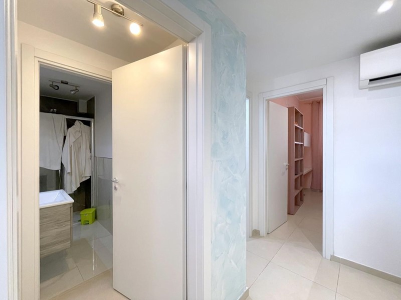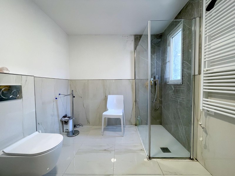 Salendo pochi gradini si accede al piano mezzanino, dove trova posto un grande bagno finestrato con doccia, rifinito con gusto e materiali moderni. La zona notte si sviluppa al primo piano ed è composta da due ampie camere matrimoniali, entrambe dotate di bagno privato con doccia, e da una terza camera singola. Un elegante disimpegno con armadiature su misura collega gli ambienti, conducendo anche a una terrazza vivibile, perfetta per rilassarsi in totale privacy.