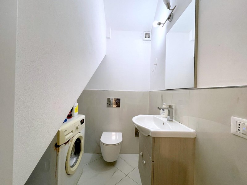 Il piano mansardato offre un ulteriore ambiente polifunzionale, attualmente utilizzato come quarta camera, con annesso bagno completo e spazio ripostiglio. Si tratta di una zona estremamente versatile, adatta anche come studio, palestra o stanza per gli ospiti.