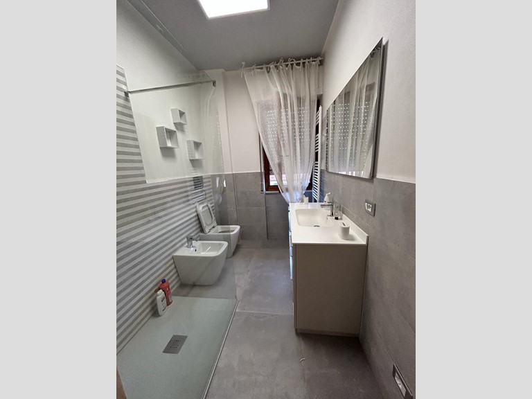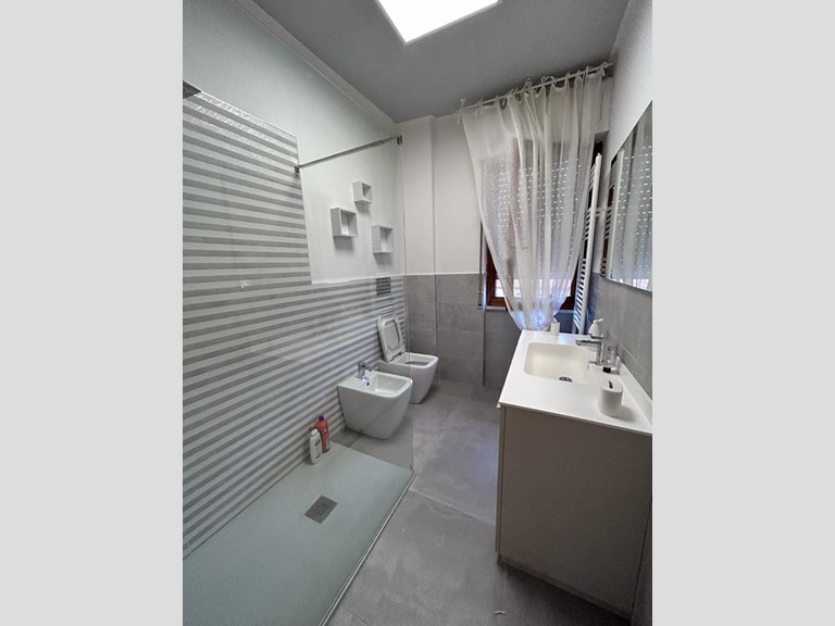 Al secondo piano di palazzina senza ascensore, affittasi appartamento arredato solo di cucina e composto come segue: cucina abitabile con terrazzo, ripostiglio con eventuale attacco per la lavatrice, bagno finestrato con doccia walk-in, due camere da letto, ampio soggiorno open space con terrazzo e cantina. Disponibili tre posti auto scoperti.