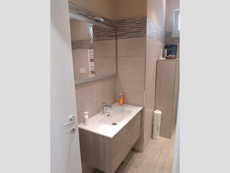 Ingresso sul soggiorno con cucina pranzo, disimpegno notte, 2 bagni e 2 camere grandi.