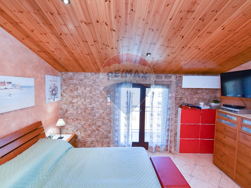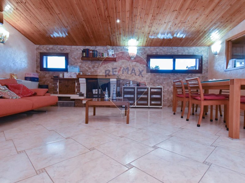 Ingresso diretto sull'ampia zona living di 60 mq circa con zona camino, cucina in muratura, camera da letto, cameretta, ampia cucina con affaccio su balcone terrazzato con lavanderia annessa e bagno.