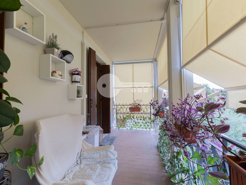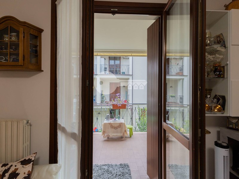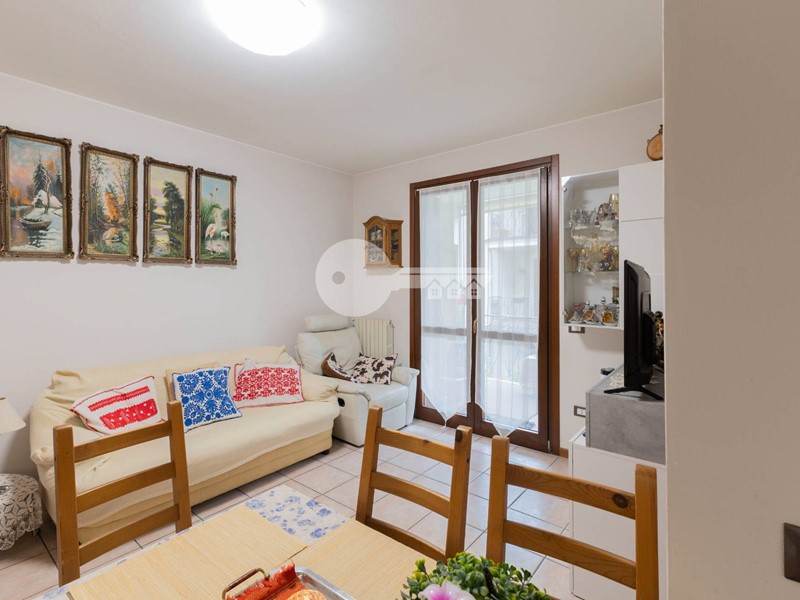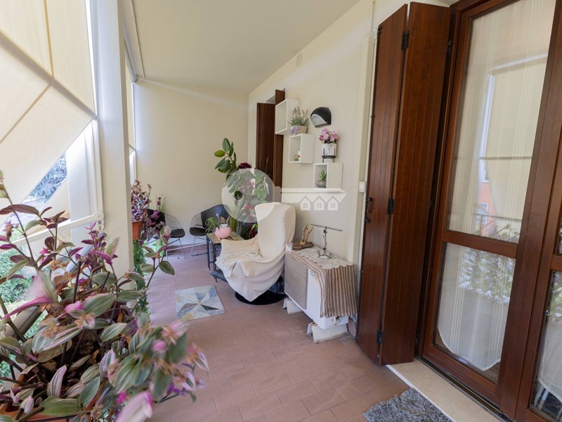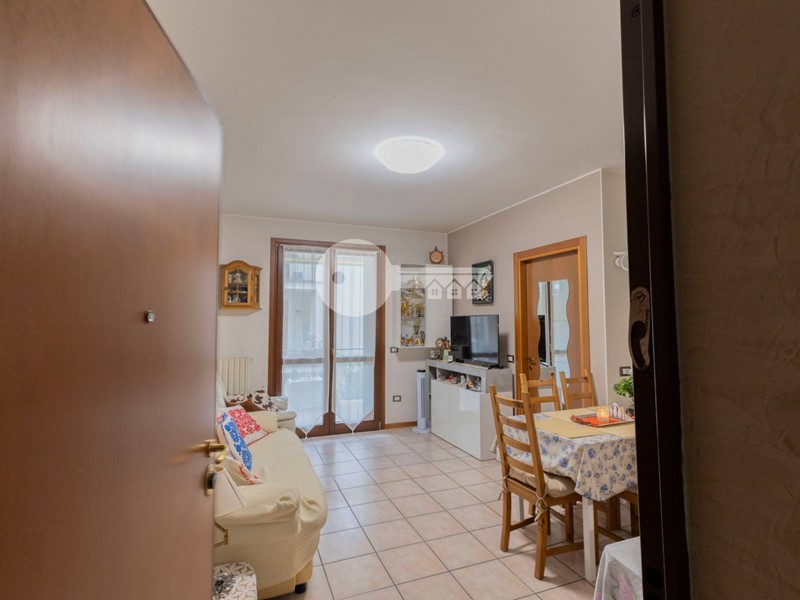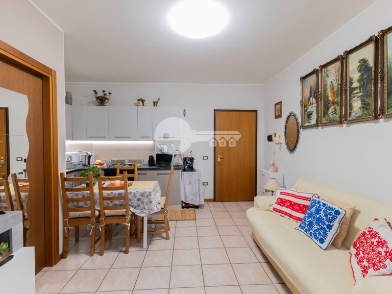 Lingresso conduce direttamente alla zona giorno con angolo cottura e accesso a un comodo loggiato coperto, ideale per trascorrere piacevoli momenti allaperto.