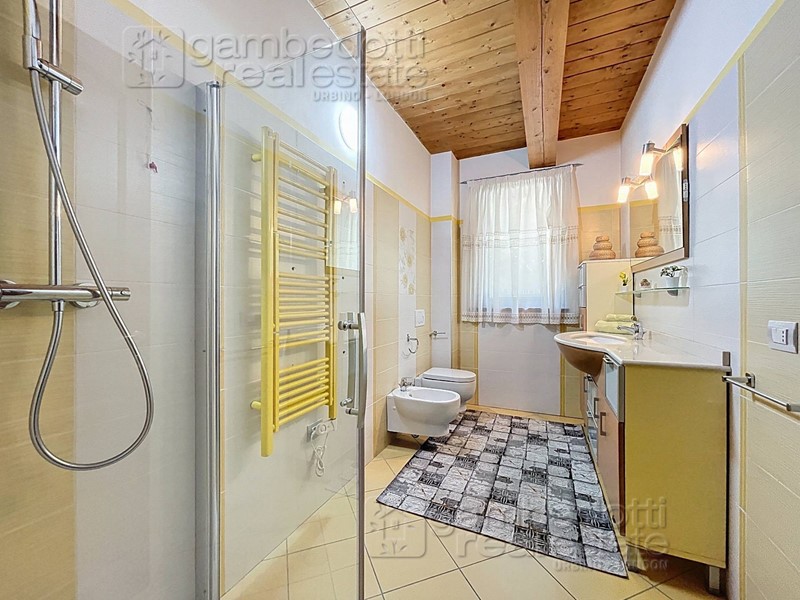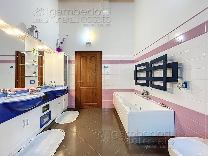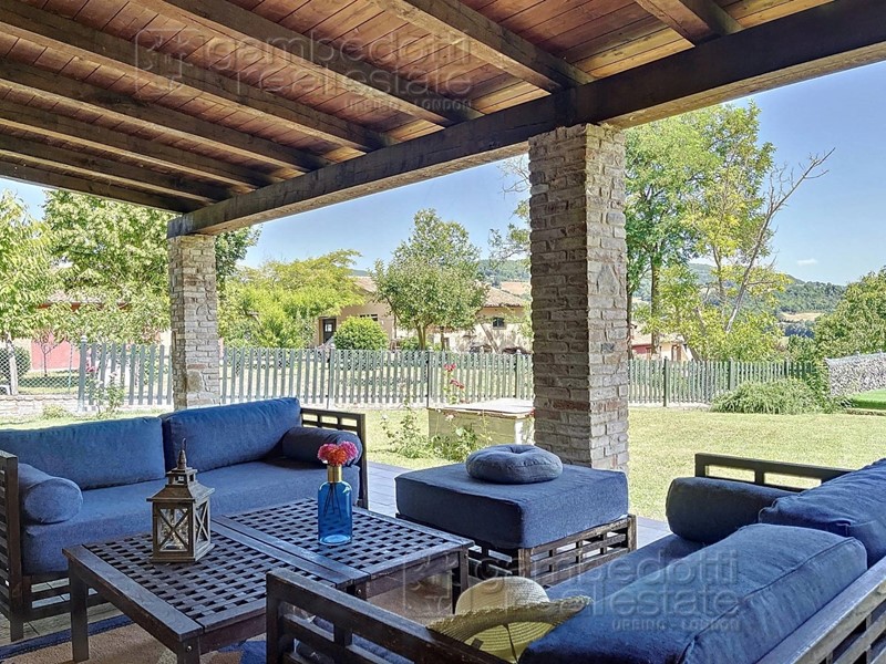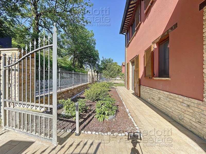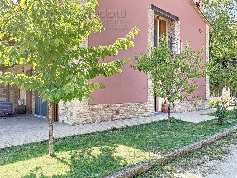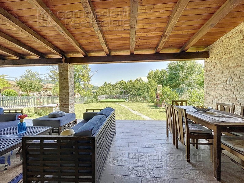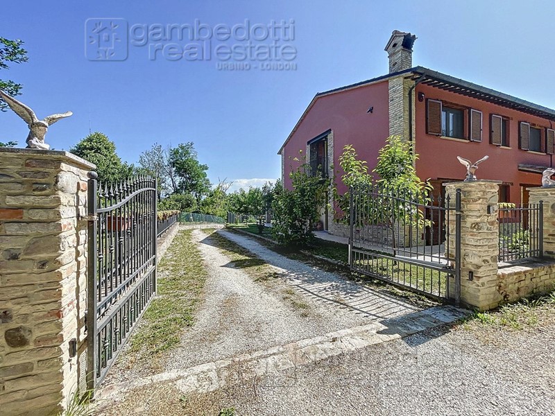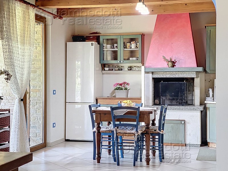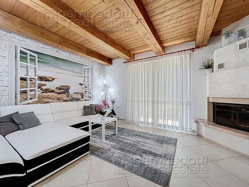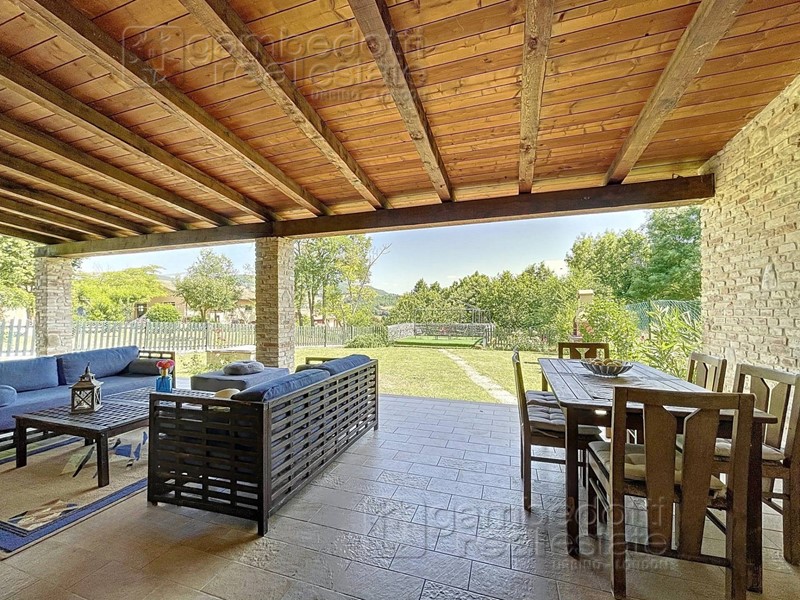 In vendita a Fermignano (PU - regione Marche) villetta di recente costruzione con ampio giardino ed alti standard abitativi. La proprietà è costituita da un fabbricato di tipologia rustica, a mattoncini a vista e legno con finitura in rame per gronde e scossaline. L'abitazione si sviluppa su due piani, al piano terra è presente un bell'ingresso con la scala a giorno in legno, un'ampio soggiorno con zona pranzo e comunicante con un'ampia cucina abitabile completamente attrezzata di mobile ed elettrodomestici per la cucina oltre ad un camino per cucinare; questa zona è particolarmente piacevole perché dotata di ampie finestrature che si affacciano sulla loggia esterna coperta e di conseguenza sullo scoperto verde di proprietà. Sempre sullo stesso piano troviamo una bella sala con camino, un ampio bagno, una lavanderia ed un garage per un'auto con accesso indipendente dall'esterno, dotato di portone elettrico a scorrimento e cancello dedicato esternamente. Al piano primo invece, arrivando da questa bella scala a vista in legno posizionata nell'ingresso, si accede ad un ballatoio che da l'accesso alla camera matrimoniale principale e ad altre tre ampie camere da letto di cui una soppalcata, un ampio bagno con doppio lavello, vasca idromassaggio e doccia ed infine un bel ripostiglio attrezzato di armadietti dove sono alloggiati impianti di allarme e video-sorveglianza. La proprietà è dotata di una bella ed ampia loggia panoramica attrezzata di lavello che si affaccia sullo scoperto a giardino della casa, uno spazio ideale quale estensione del soggiorno e come salotto esterno specialmente nei periodi estivi per passare del tempo al fresco, in famiglia o con gli amici, anche per una grigliata all'aperto, grazie al barbecue in muratura di cui è dotato il giardino. La proprietà è attrezzata di impianti di ultima generazione e di sistemi di risparmio energetico di un certo rilievo, essendo in Classe B. L'impianto di riscaldamento è a pavimento con caldaia a condensazione a gas e con termostato in ogni ambiente; gli altri impianti inclusi nella proprietà sono: impianto di climatizzazione, allarme e video-sorveglianza, video-citofono, 2 cancelli per auto con apertura automatica, basculante garage con apertura elettrica a motore, impianto fotovoltaico sul tetto da 6 KW e impianto di raccolta delle acque piovane. La proprietà è situata in zona collinare, immersa nel verde e dotata di una bella panoramica, posizione tranquilla e riservata ma allo stesso tempo a 5 minuti dal centro di Fermignano, zona servita anche dai mezzi pubblici per i bambini. Un'occasione irripetibile per la qualità ed il comfort che la proprietà può garantire, senza tralasciare nulla in termini spazi abitativi e di risparmio energetico ad un prezzo davvero interessante!! Contattaci subito per prenotare una visita e non rischiare di arrivare tardi, chiama subito lo 0722 041400.