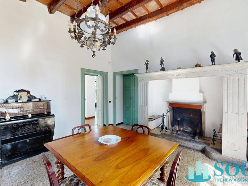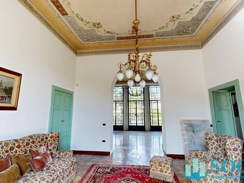 Nell'attuale assetto, il piano terra, accessibile da un ingresso principale e da due secondari posti sui lati est e ovest, accoglie una cucina abitabile e un' ampia sala da pranzo impreziosita da un meraviglioso camino e dal soffitto a cassettoni; un lungo corridoio conduce ad un'ampia e luminosa veranda, al bagno di servizio e ad un meraviglioso soggiorno contraddistinto dal soffitto affrescato, dettaglio peculiare che viene ripreso nella stanza adiacente adibita a studio.