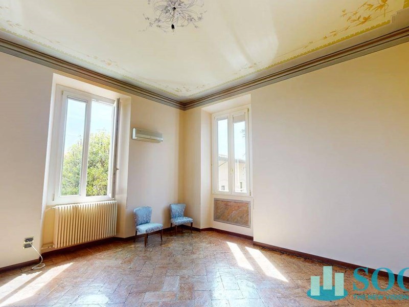 La soluzione è fornita di porte a battente finemente lavorate che esaltano appieno lo spirito architettonico della proprietà, infissi in legno doppio vetro con persiane, termosifoni in ghisa, impianto di climatizzazione . La tipologia di pavimentazione varia a seconda degli ambienti, incarnando un gusto classico con qualche sfumatura di modernità: dal parquet nelle camere e al piano secondo al cotto lombardo che domina la zona giorno alla ceramica nei servizi .